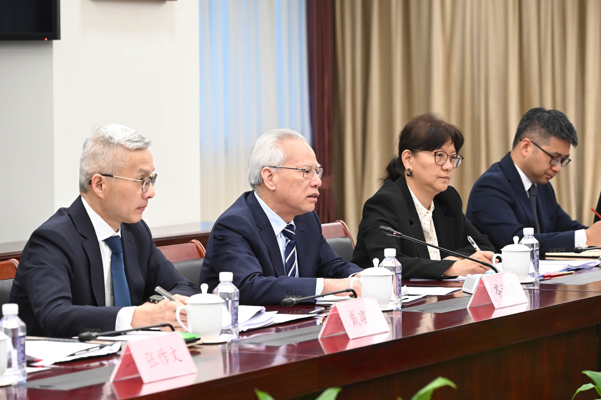 【即時新聞】正在北京的行政長官岑浩輝今(5)日上午與國務院國有資產監督管理委員會主任張玉卓會面,雙方就央企國企持續支持澳門經濟適度多元發展及橫琴粵澳深度合作區建設、澳門進一步發揮中葡商貿平台優勢等議題交流意見。