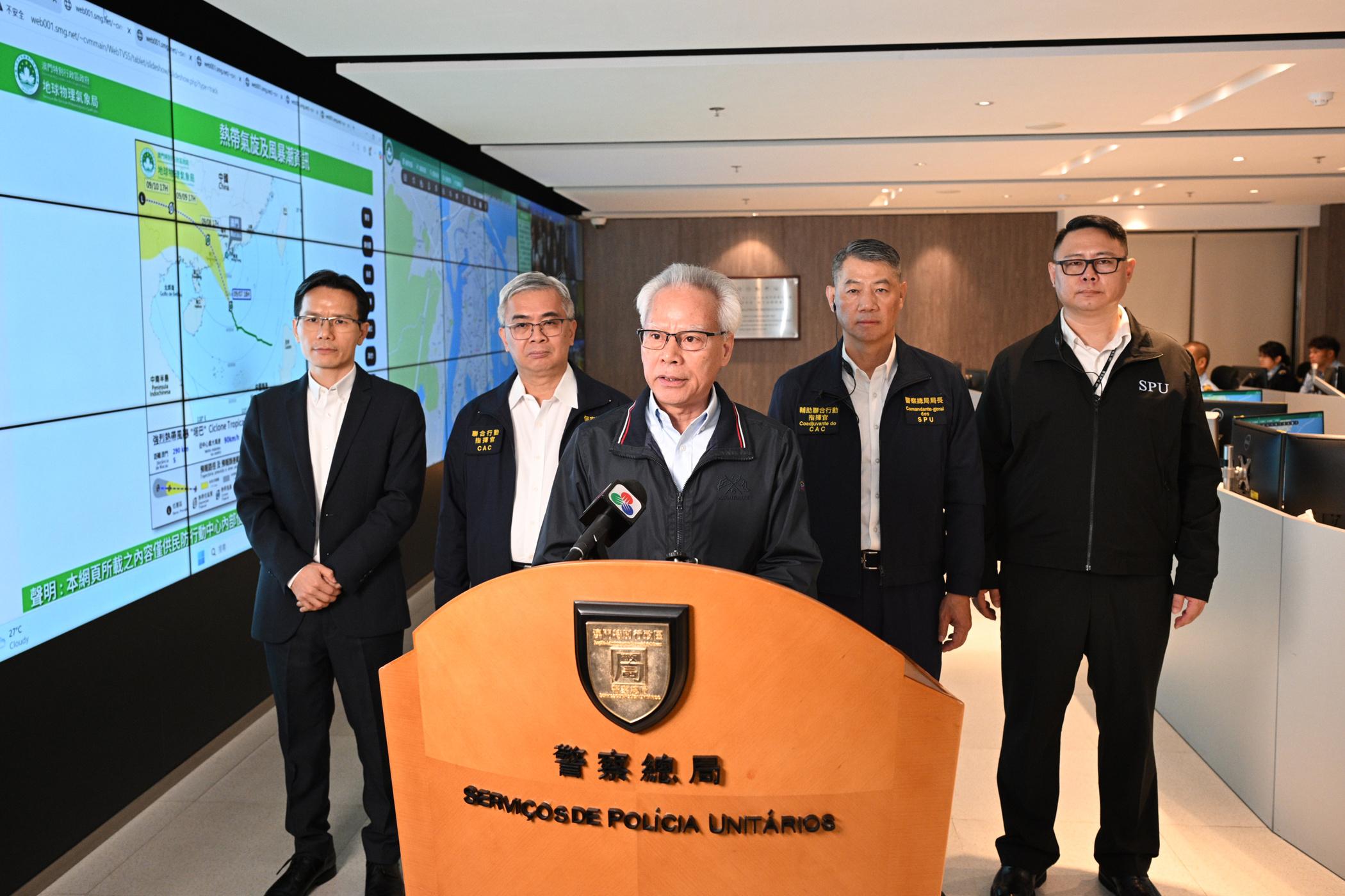 黃少澤作匯報時表示,民防行動中心已部署好各項防風防浸工作,全體成員會時刻戒備,以刻不容緩的態度處理各種情況,盡全力保障廣大居民的生命財產安全。同時,高度關注熱帶氣旋“塔巴”的發展動向,並於安全條件許可下盡快跟進市面復常的工作。
