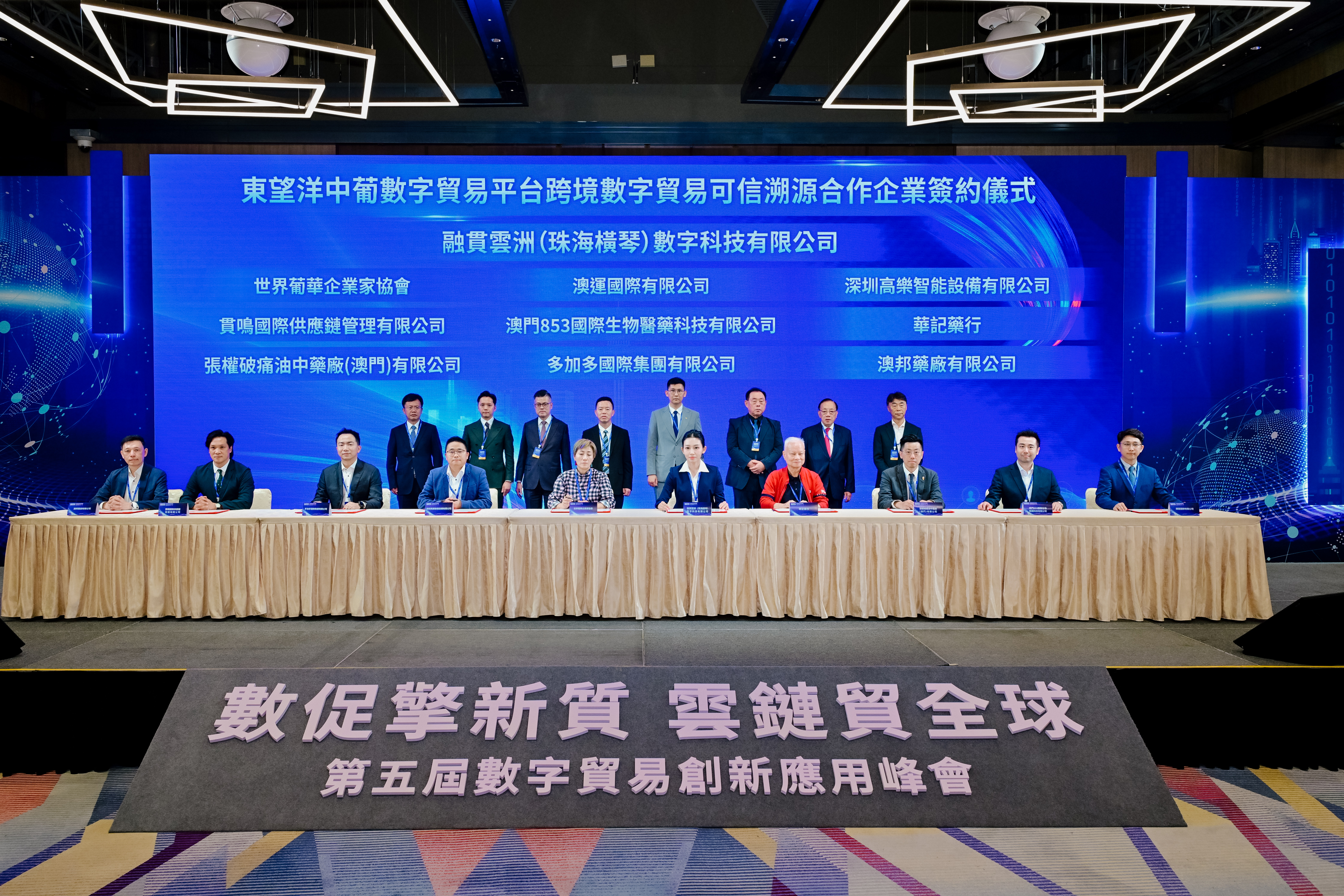 【即時新聞】由澳門質量品牌國際認證聯盟與融貫雲洲(珠海橫琴)數字科技有限公司共同主辦的第五屆數字貿易創新應用峰會下午在旅遊塔舉行。本屆峰會以「數促擎新質·雲鏈貿全球」為主題,冀搭建起高端交流平台,為全球數字貿易發展照亮前行之路。中聯辦經濟部副部長楊全州,澳門經科局副局長陳祖榮,澳門工商聯會會長/澳門質量品牌國家認證聯盟主席何敬麟,澳門行政會委員、澳門大學積體電路國家重點實驗室聯合創始人余成斌,廣東省委橫琴工委委員、省橫琴辦副主任葉真,澳門科學技術發展基金行政委員會主席余雨生,澳門政發局局長張作文,韓國如意購物株式會社主席、議長趙炳相,韓俄文化交流協會秘書長楊時憲,珠海市發展和改革局黨組書記、局長、市大灣區辦主任吳卓文,融貫雲洲董事長烏蘇晉等參加活動。