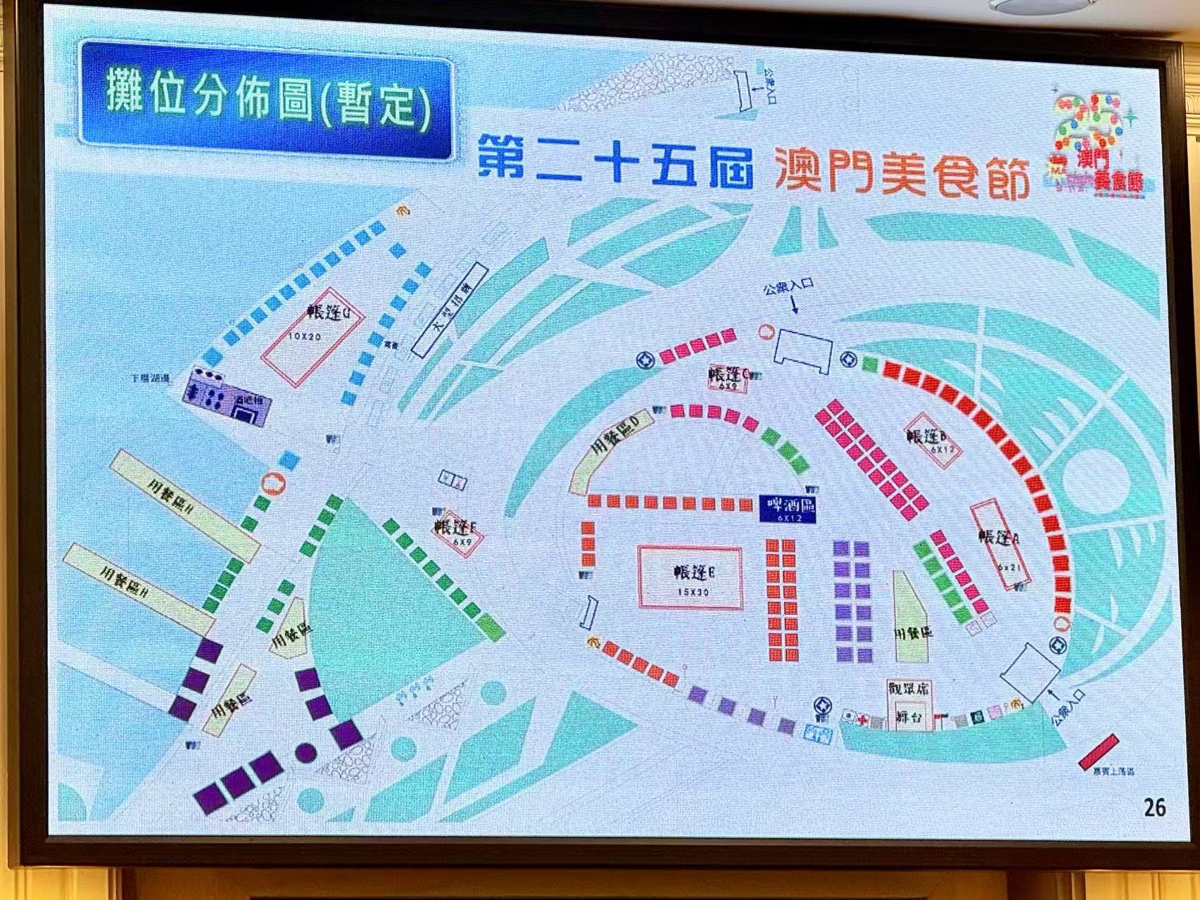 陳澤武介紹稱,報名期由於9月10日至26日,有興趣者可填寫表格(簡介會期間會派發章程及報名表格;亦可登人「澳門餐飲業聯合商會」網站/微信公眾號平台進行下載),填寫報名表格時必須正楷或以電腦填寫,需蓋有商號印章及負責人簽署。並強調「攤位報名表」內填寫的在美食節期間所售賣的食品必須與現行餐廳內出品相符,大會將會到各店抽查餐牌出品;甜品/飲品攤位只能銷售各類甜點飲料,其他攤位則不得銷售甜品飲料;售賣之食品必須經主辦單位批准;報名後,經大會確認入圍的參與商號必須簽署使用攤位合約。