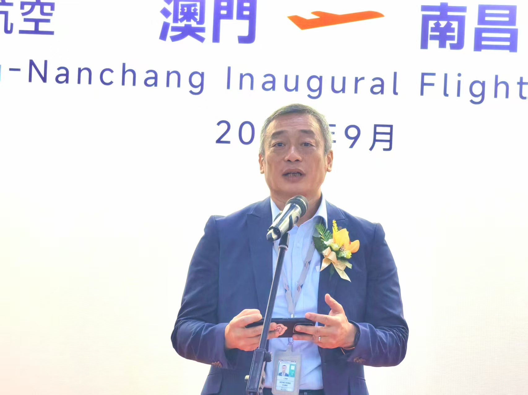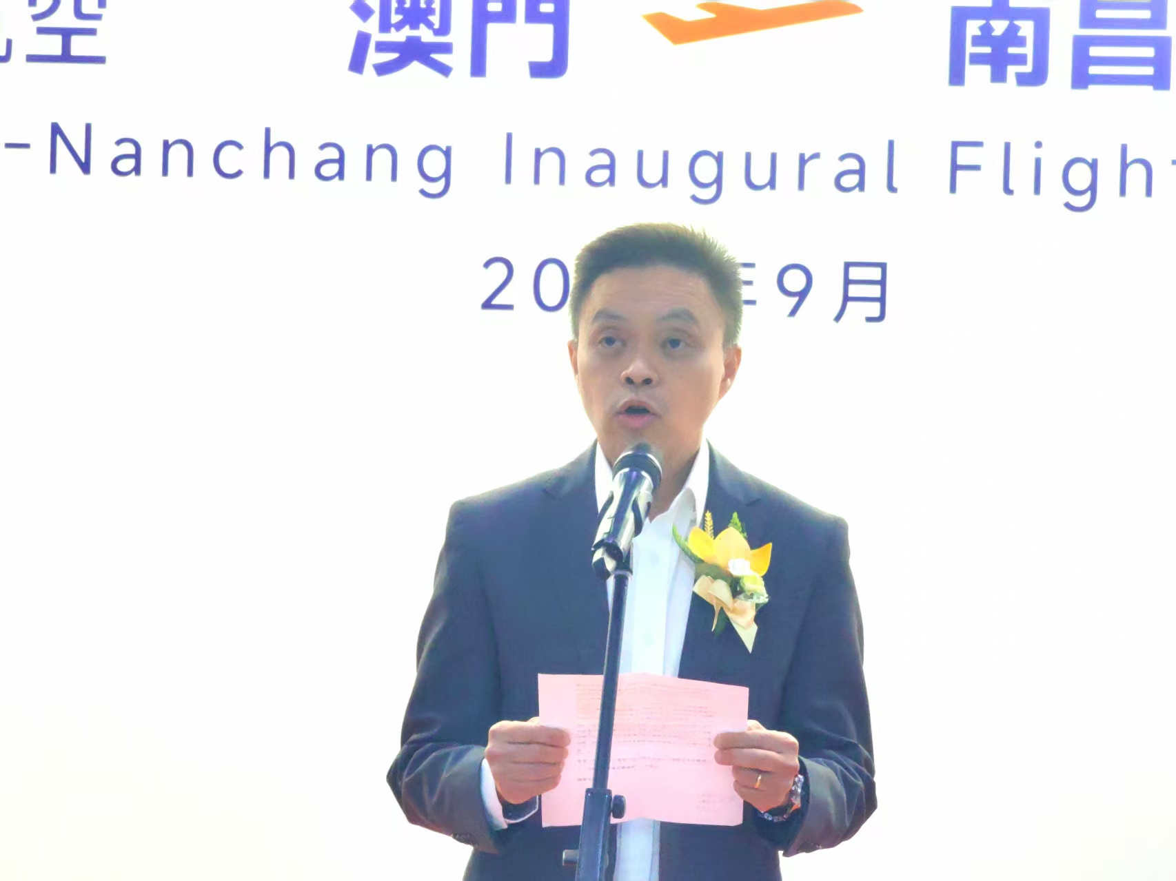 澳門國際機場專營股份有限公司(CAM)執行委員會主席陳穎雄致辭時表示,新航線連接澳門與南昌,為兩地的交流與合作創造了新契機。 南昌作為江西省的省會,被譽為“英雄城”,以解放軍誕生地、滕王閣、漢代海昏侯國遺址以及贛江的自然美景聞名。 此航線開通便利澳門居民和旅客前往南昌探索其獨特的歷史魅力及欣賞當地的人文和自然風光。 與此同時,為南昌市民開啟通往中西文化交融的國際旅遊休閒中心一澳門的大門。