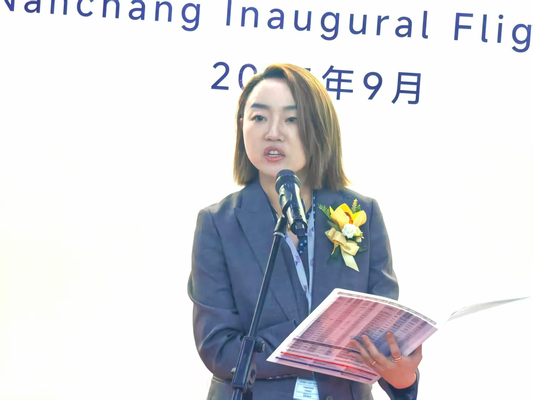 東航澳門分公司總經理楊甜甜致辭回顧了東航與澳門20餘年的航空聯結,指自1998年上海航空開通南京-澳門航線、2007年東航開通上海浦東-澳門航線以來,20餘年間東航始終是兩地情誼、經貿及人文交流的“橋樑”,目前已實現澳門直飛上海、北京大興、南京等多個城市。 今次東航澳門-南昌航線讓“朝發夕至”成為常態,是東航“往遠處飛、往國際飛、往新興市場飛”戰略的體現;而C909作為我國按國際規章自主研製、擁有自主知識產權的客機,此次首航是其發展歷程的重要節點,讓澳門同胞親身感受“中國製造”魅力。