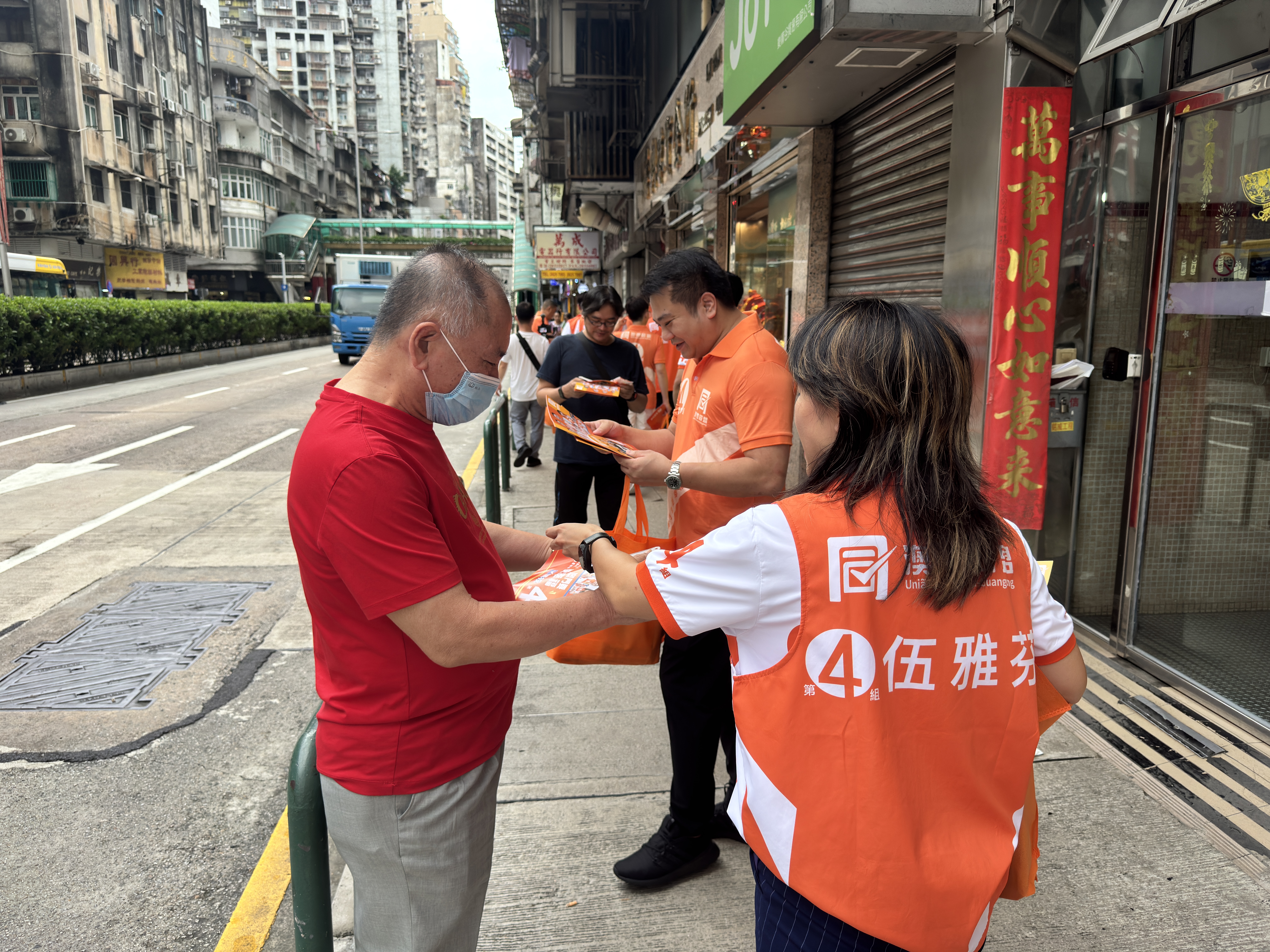 【即時新聞】澳粵同盟三名候選人伍雅芬、盧德基、林華傑今日走訪筷子基、青洲等多區,與居民、商戶交流及收集意見,並派發競選宣傳單張,介紹政綱及參選理念。