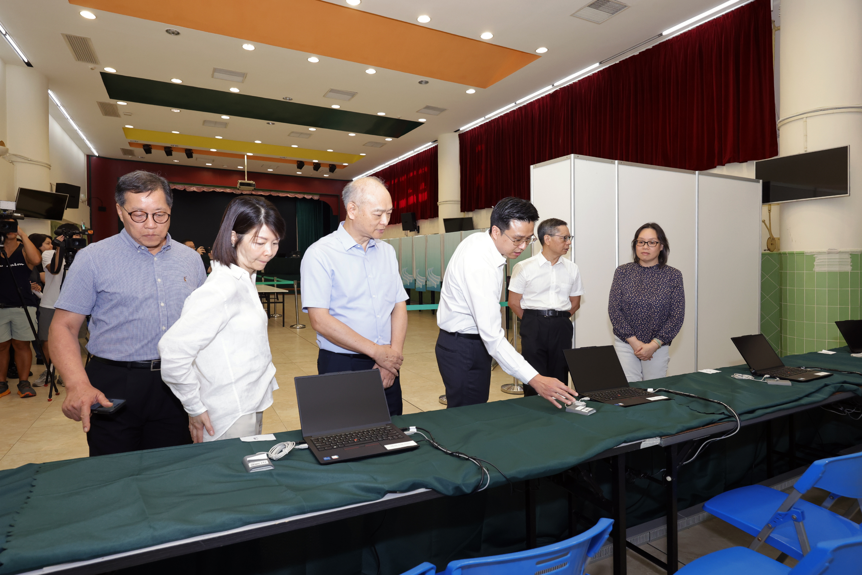 選管會近日都有視察各投票站的準備情況,盛銳敏表示,37個投票地點,共38個直選票站和5個間選票站,連同後備票站,都已完成搭建佈置,選管會視察時按需要提出優化建議,務求進一步方便選民投票。票站完成佈置後,票站人員也開展實地測試演練,包括熟習應變方案的操作流程。