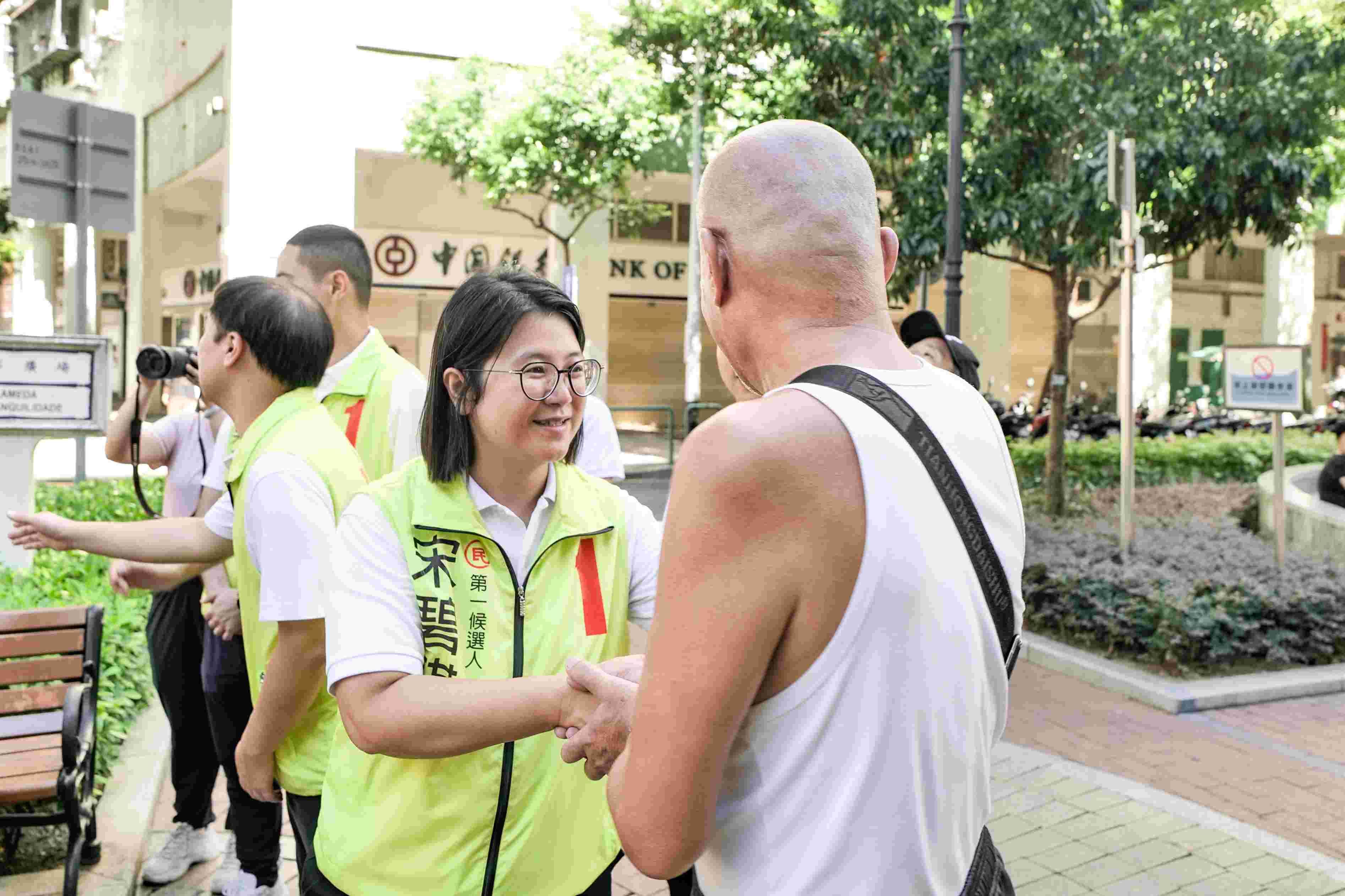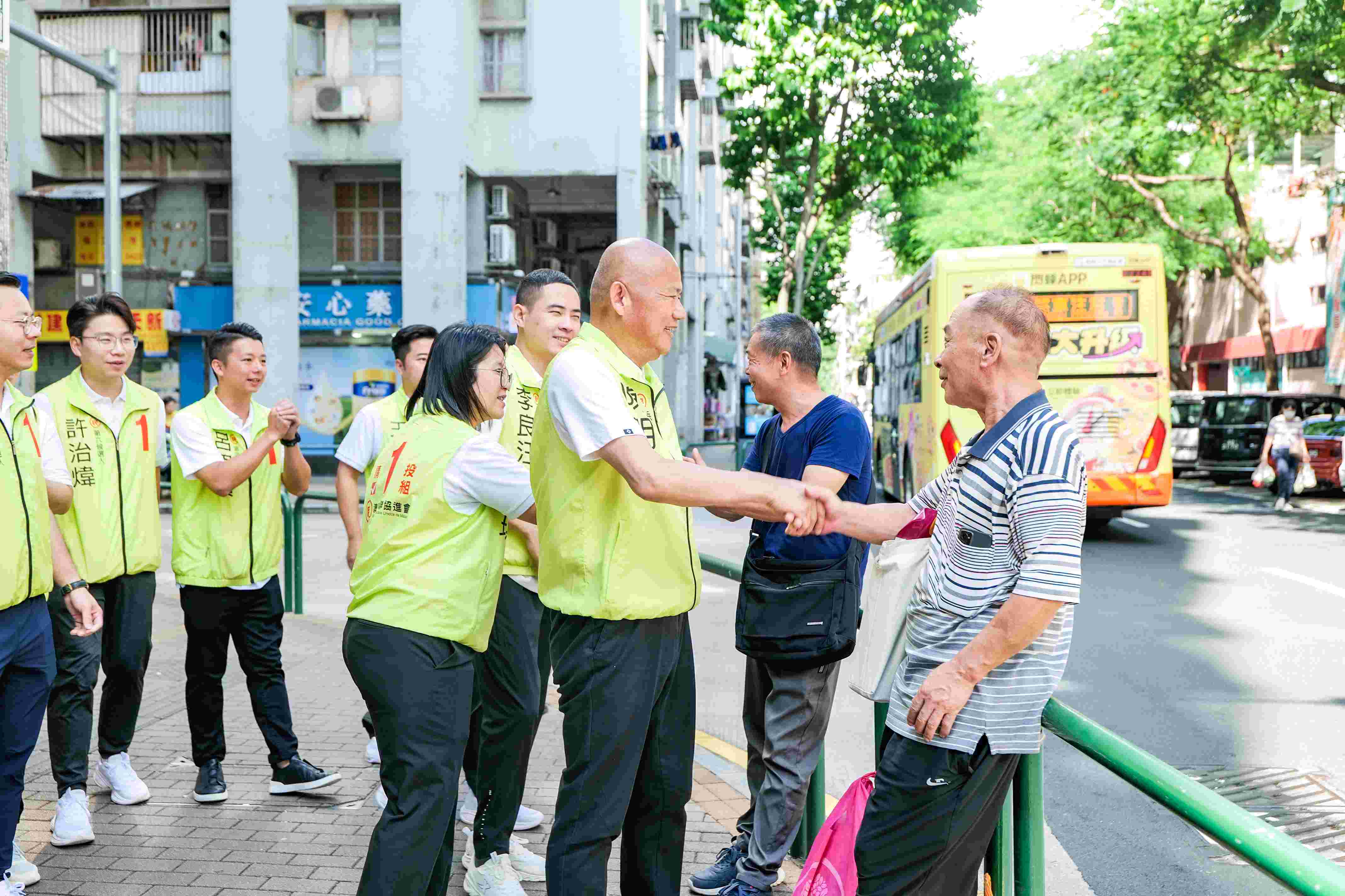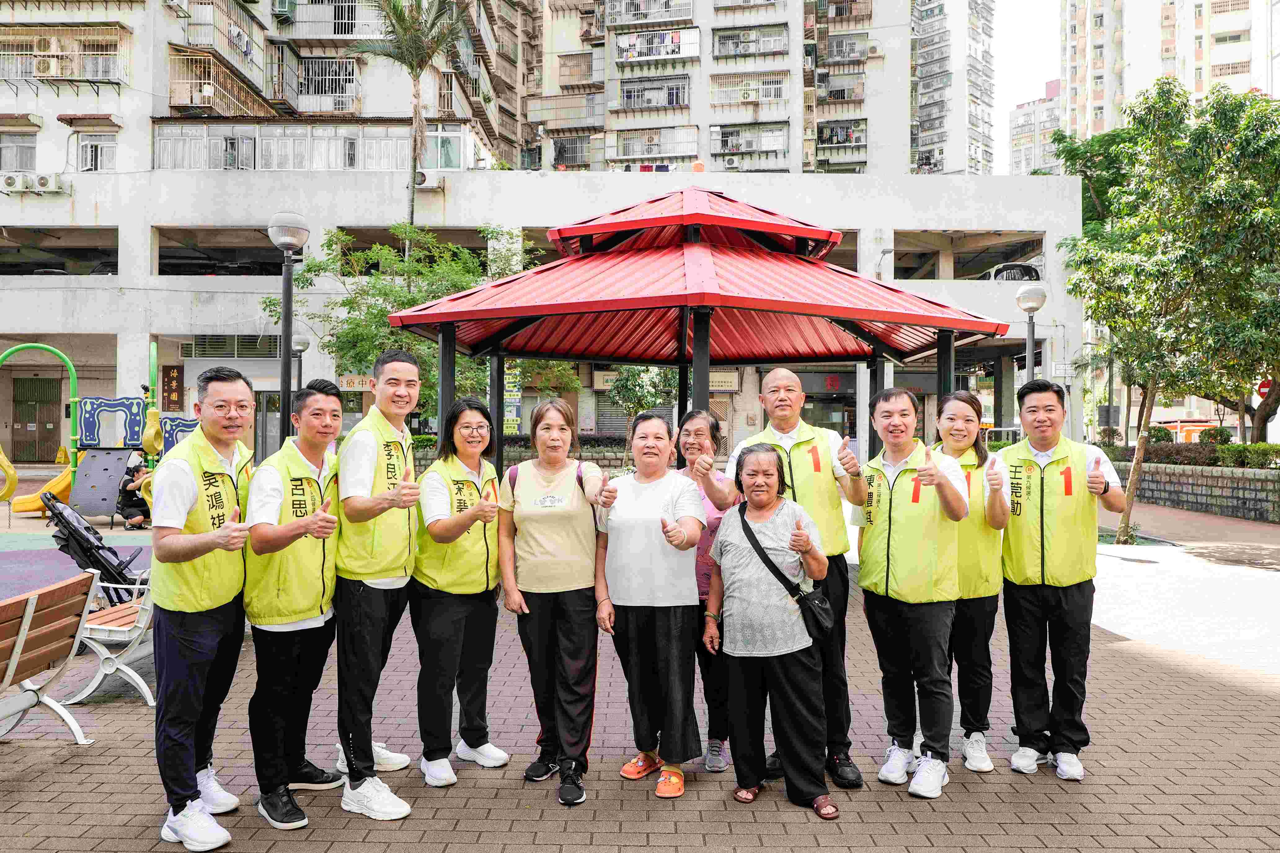 【即時新聞】第八屆立法會選舉第1組「民聯協進會」當選的3名候選人宋碧琪、李良汪和陳禮祺,與受托人陳明金以及團隊成員昨日上午到祐漢一帶進行謝票,沿途向居民握手表達謝意,並和居民溝通交流,收集意見。