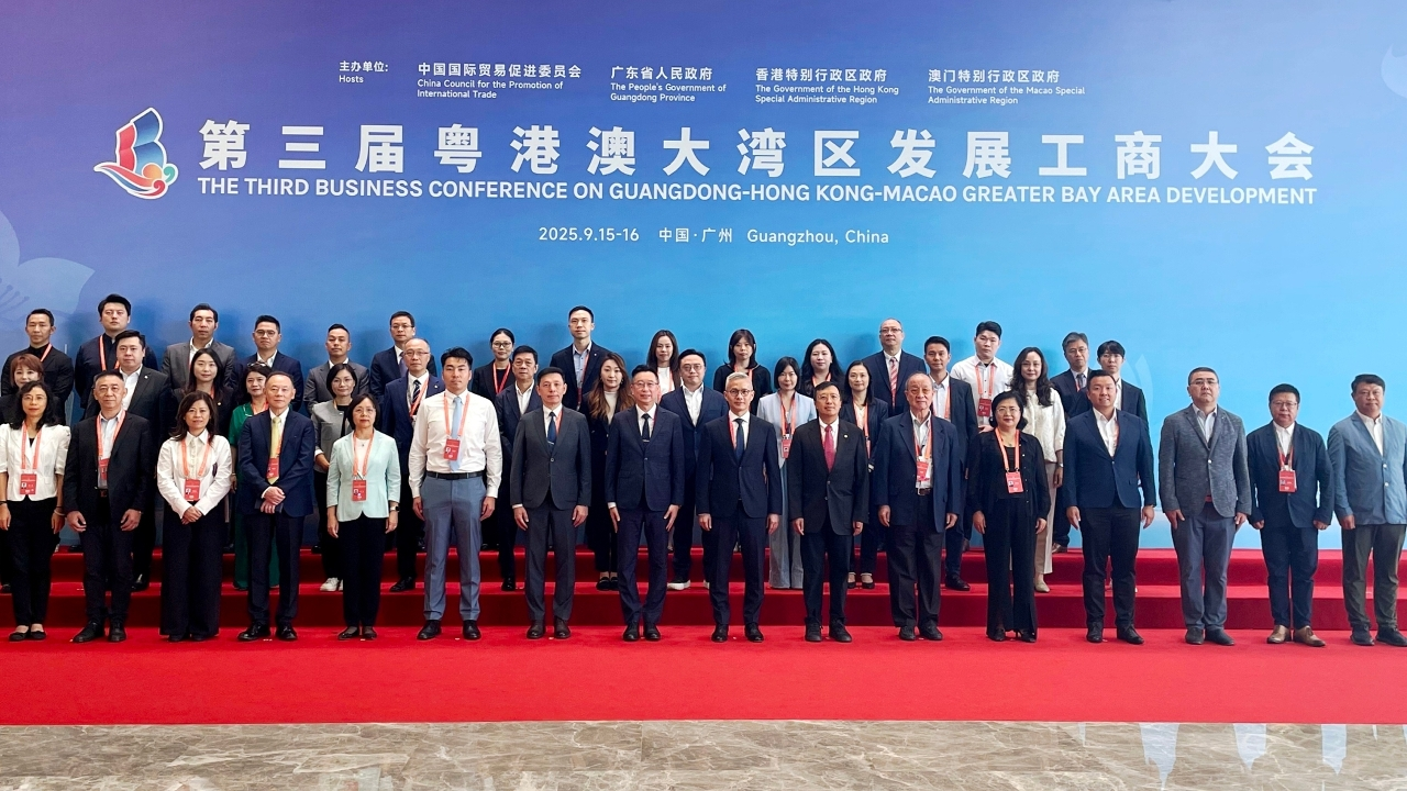 【即時新聞】第三屆粵港澳大灣區發展工商大會於2025年9月15日至16日在廣州白雲國際會議中心盛大舉行。全國政協副主席姜信治、廣東省人民政府省長王偉中、澳門特別行政區行政長官岑浩輝、香港特別行政區行政長官李家超、中國國際貿易促進委員會會長任鴻斌及中國工商銀行行長劉珺分別於15日舉行的開幕式發表講話及作視頻致辭。