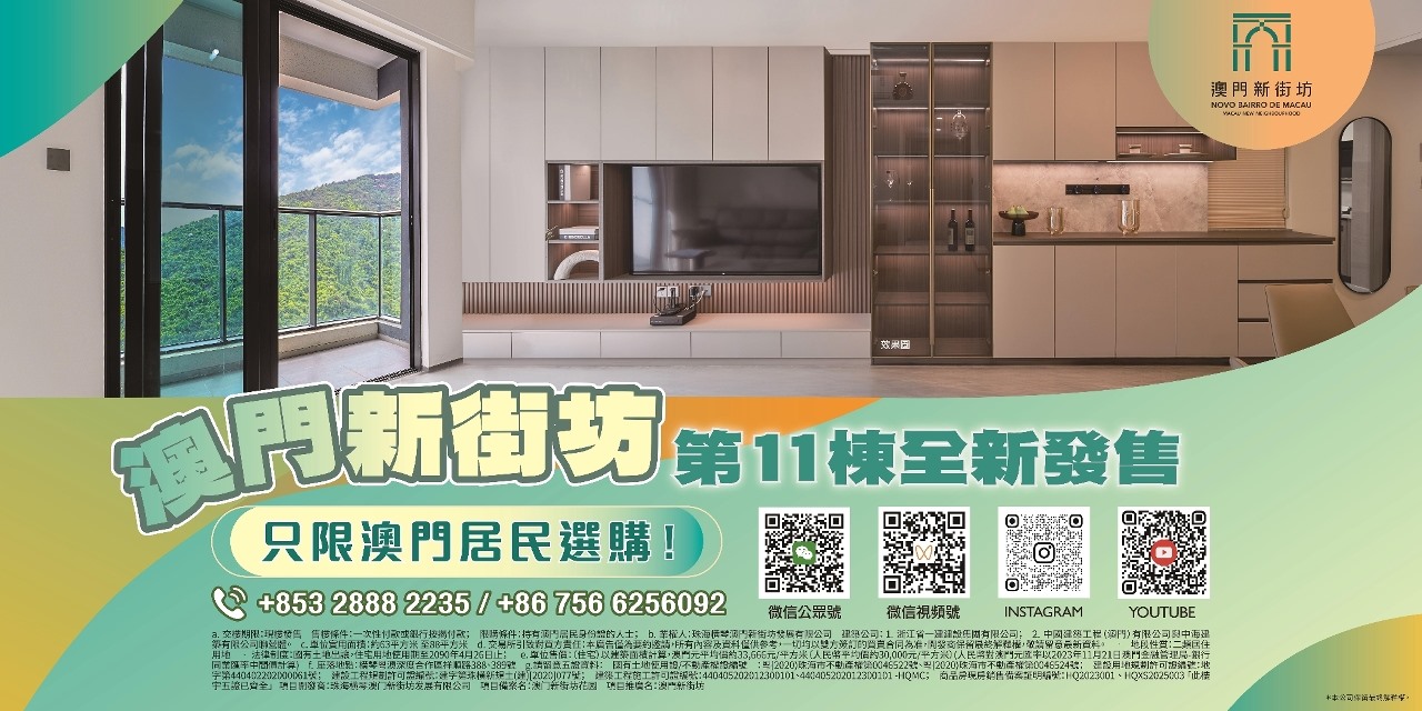 【即時新聞】橫琴「澳門新街坊」全新加推第11棟,將於9月19日上午9時正式開售。第11棟設計為一層七戶,電梯大堂配備落地玻璃,走廊視野開揚寬闊,營造通透感的生活空間。歡迎澳門居民親臨參觀。