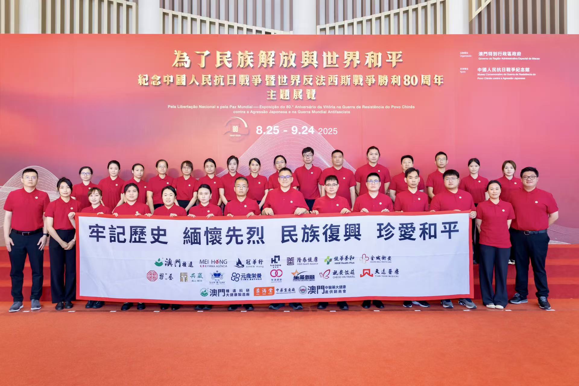 【即時新聞】澳門中醫藥大健康產供銷商會執行會長吳時德率領旗下會員單位一行30人,今日中午12時半前往中國與葡語國家商貿合作服務平台綜合體,參觀「為了民族解放與世界和平-紀念中國人民抗日戰爭暨世界反法西斯戰爭勝利80周年」主題展覽。是次活動旨在深化業界同仁對國家歷史的認識,進一步厚植愛國情懷,增強行業使命感與責任感。