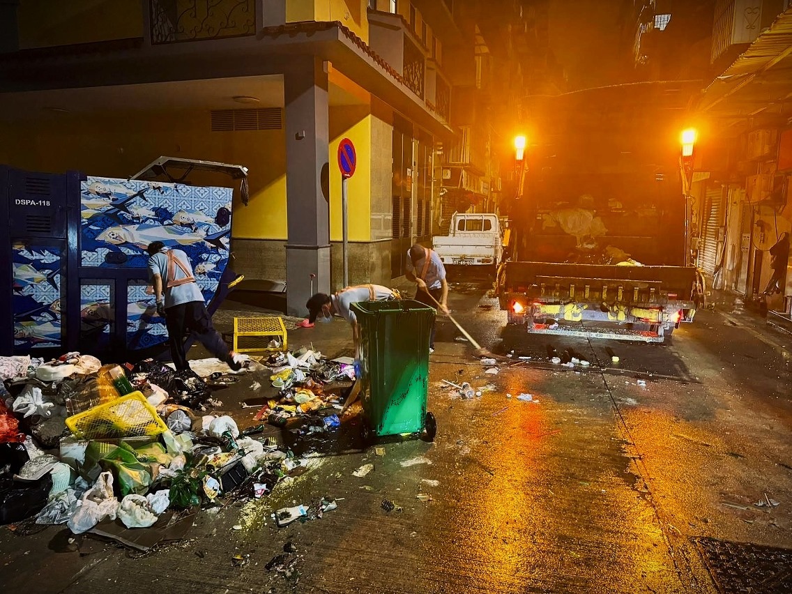 【即時新聞】颱風“樺加沙”對本澳市面造成一定程度的破壞,市政署已動員人力及設備,全力做好善後,協調清潔專營公司通宵進行清理垃圾工作,以盡快恢復市容。同時呼籲市民及商戶,必須將垃圾或受浸物品包好,棄置於垃圾收集設施,配合環衛工作,讓清運工作更順利進行。