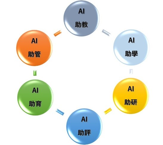 在構建人工智能教育師資培訓體系方面,將從三大維度展開:鑽研人工智能前沿技術,讓教學人員緊握時代脈搏;邀請高等院校委派專家學者前往學校開展巡迴專題培訓,圍繞AI助教、AI助學、AI助研、AI助評、AI助育、AI助管六大範疇開展巡迴專題培訓;提供校本培訓財政支持,促進學校校本化發展,為資訊類教學人員及非資訊類教學人員分別提供每學年10小時和6小時的培訓。