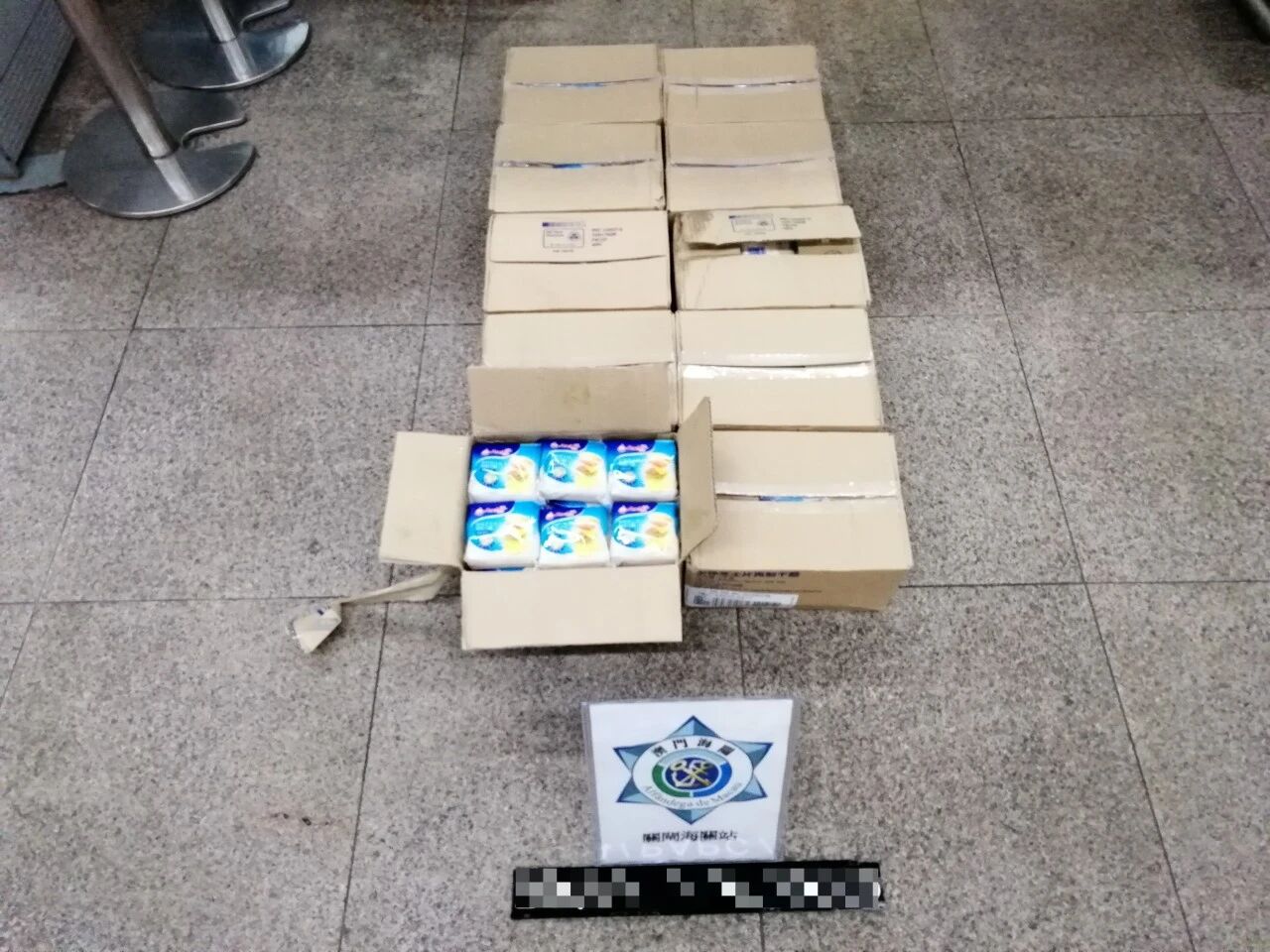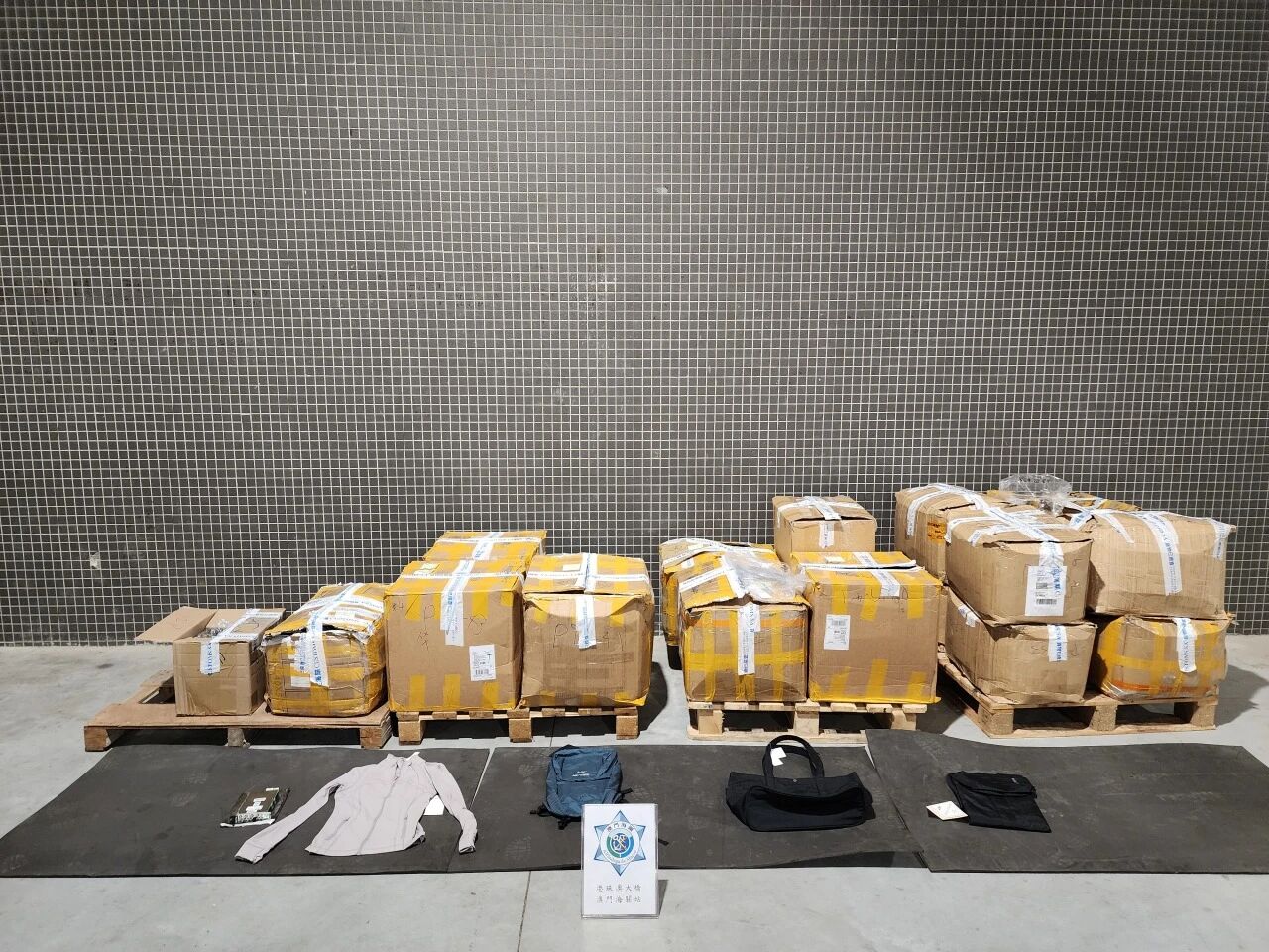 同日在港珠澳大橋澳門口岸入境車道截查一輛跨境貨車,駕駛者為女性澳門居民。經檢查,發現該女子試圖將745件服裝、226件袋類產品及12件電子板偷運入境。