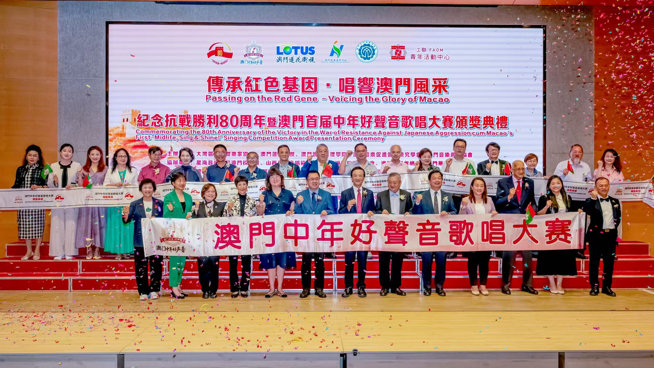 本次大賽由大灣區國際聲樂家協會、澳門蓮花衛視、澳門鏡湖護理學院、澳門音樂促進健康研究學會、澳門音樂產業協會聯合主辦,自今年7月啟動以來,歷經三場海選、一場複賽及總決賽,歷時兩個多月的層層選拔,最終誕生冠、亞、季軍及多個專項獎項,吸引近500名澳門中年音樂愛好者參與,成為澳門紀念抗戰勝利80周年系列活動中極具特色的文化盛事。