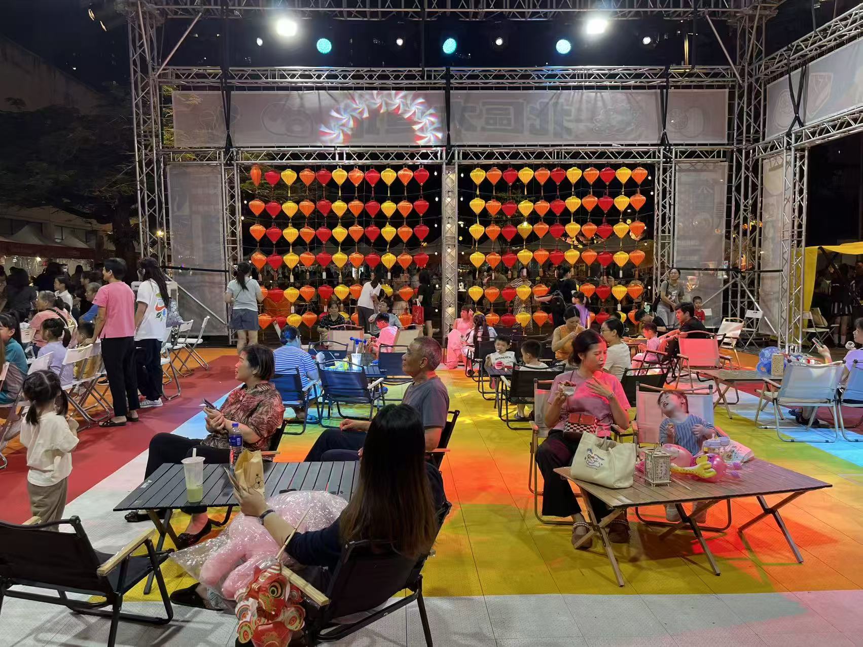 另外,位於原逸園狗場的「北區大笪地中秋市集」同樣人氣火爆,現場設有大型中秋節慶裝飾、美食及遊戲攤位,並安排猜燈謎、放花燈等中秋節慶主題的活動,不少居民一家大小帶備燈籠前來遊玩,共享天倫之樂。