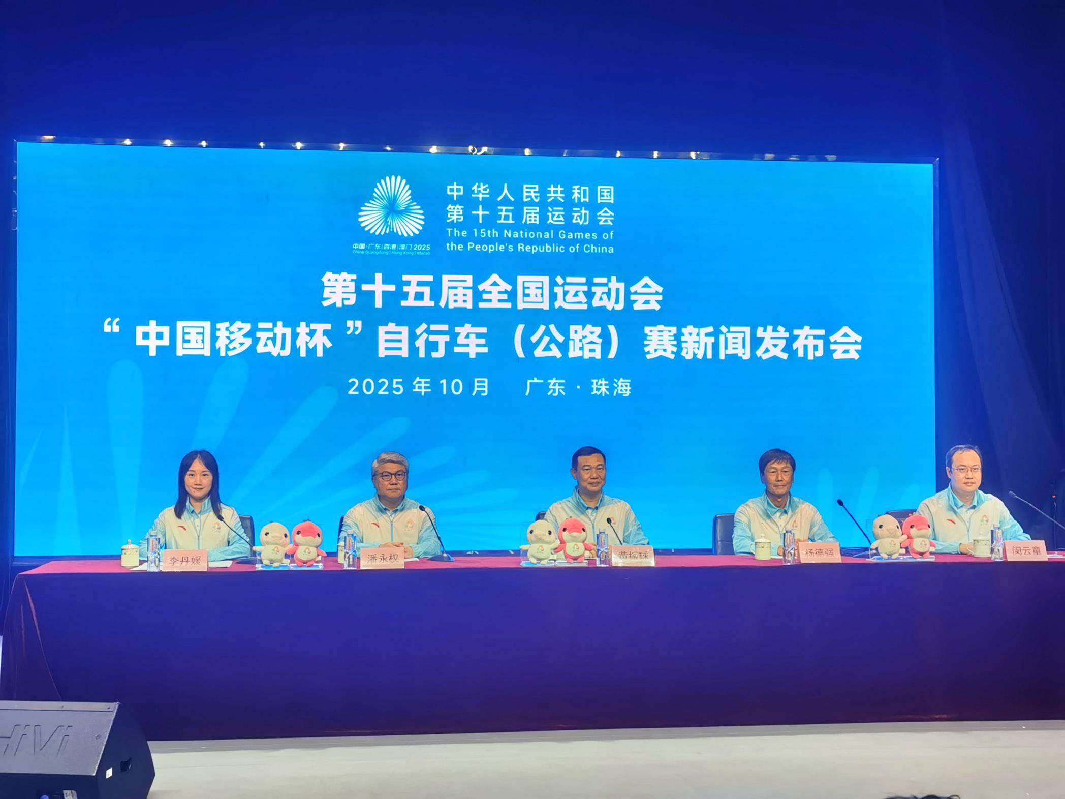 今日下午,第十五屆全國運動會“中國移動杯”自行車(公路)賽新聞發佈會在珠海舉行。珠海市政府副市長黃振球,全國運動會香港賽區統籌辦公室主任楊德強,十五運會和殘特奧會澳門賽區籌備辦公室主任潘永權以及珠海市文化廣電旅遊體育局局長閔雲童分別介紹了賽事籌備情況。發佈會由珠海市新聞辦副主任李丹媛主持。發佈會重點介紹了賽事的路線設置、賽時港珠澳大橋交通管控、賽事後勤保障等關鍵信息説明社會各界更好瞭解賽事籌備進展。