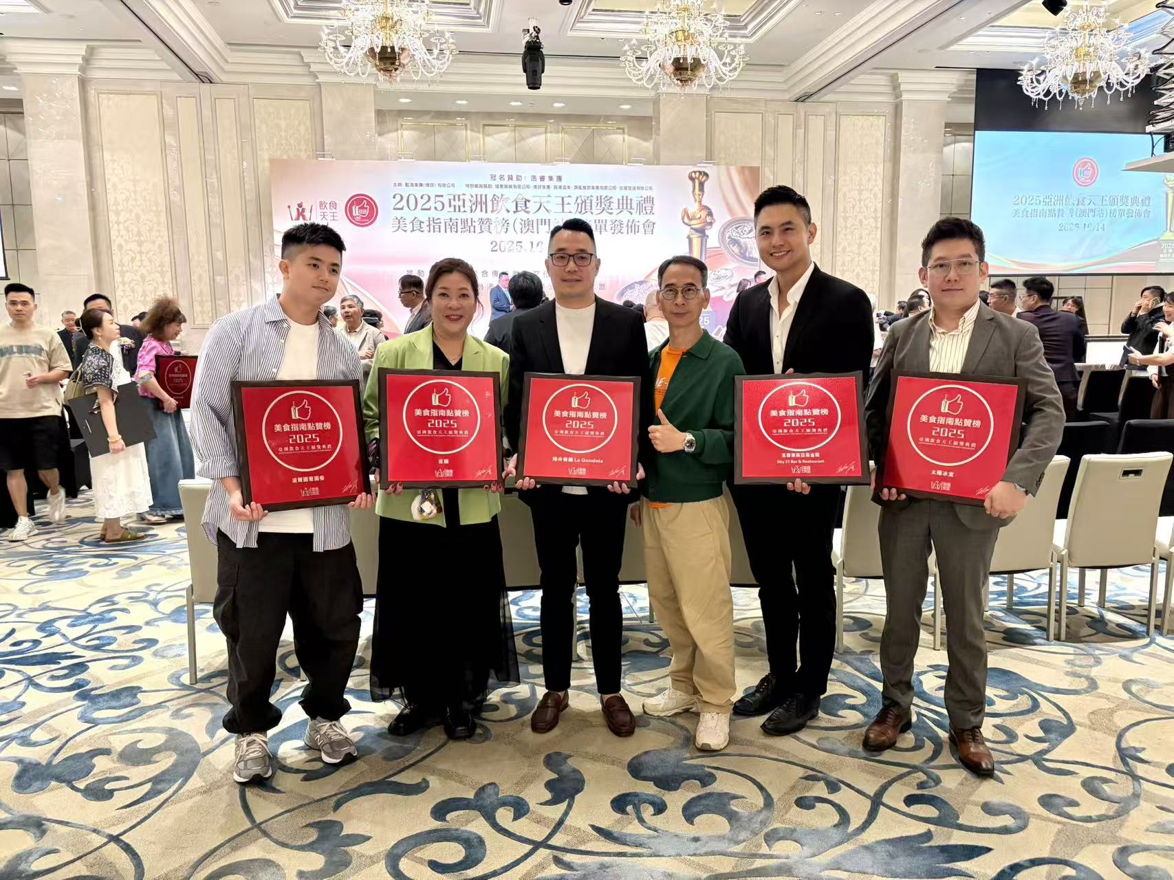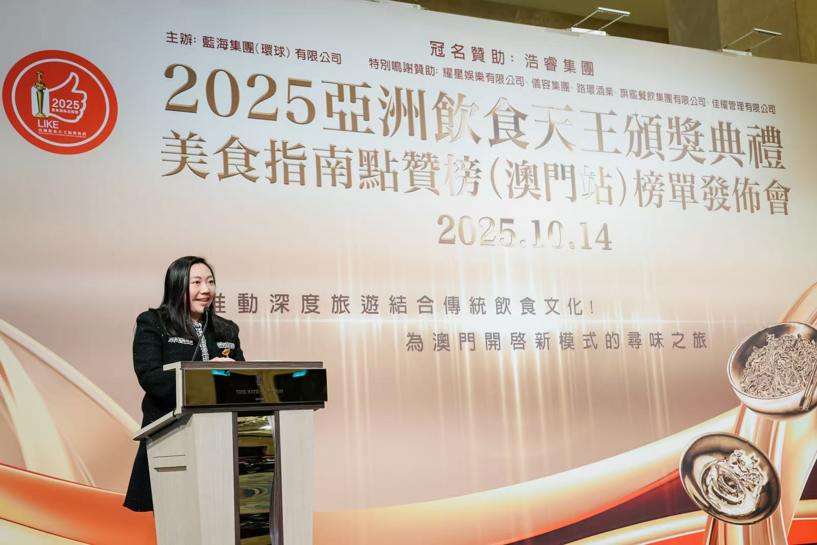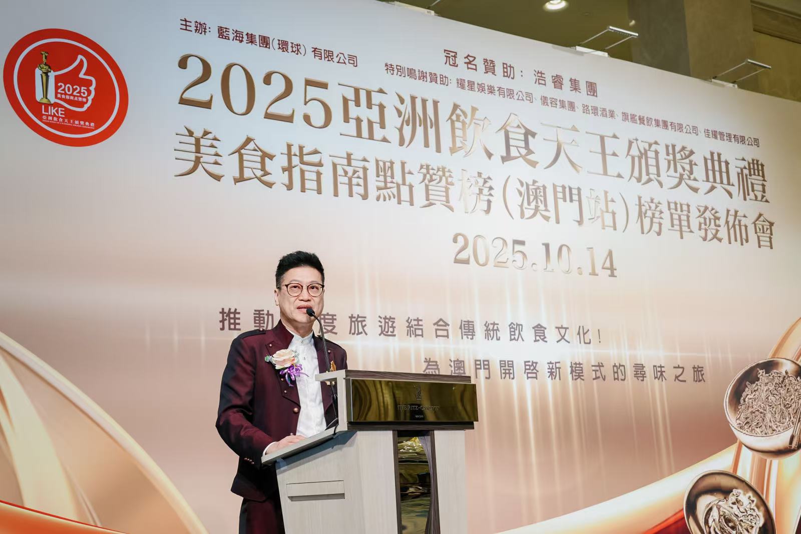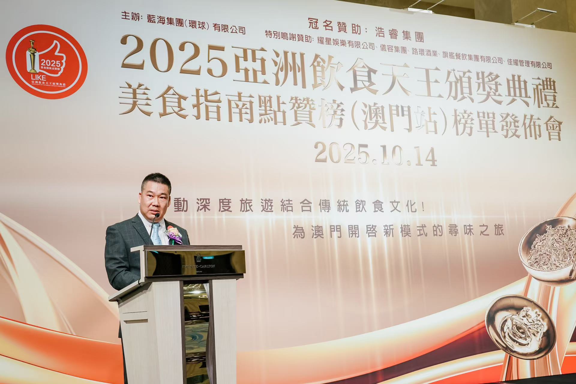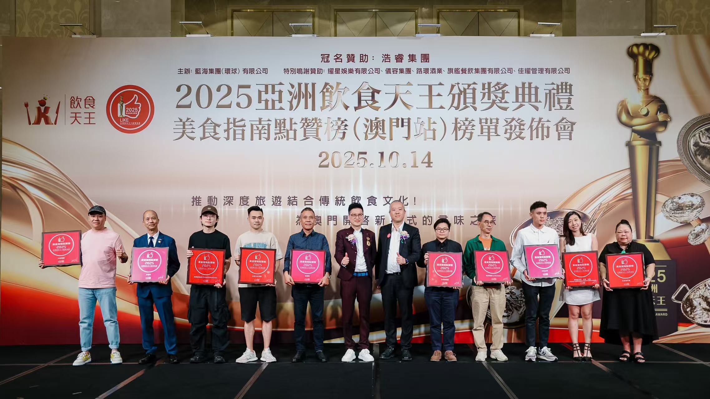 【即時新聞】由藍海集團(環球)有限公司主辦、浩睿集團冠名贊助的“2025亞洲飲食天王頒獎典禮美食指南點贊榜(澳門站)榜單發佈會”下午在麗思卡爾頓酒店宴會廳舉行,以“亞洲餐飲,亞洲人說了算”為主題,現場揭曉“美食指南點贊榜(澳門站)”100強榜單(實際96家)及5個特別獎項,為一眾本澳餐飲精英加冕,涵蓋特色老字號、米芝蓮星級餐廳、新銳人氣餐飲品牌等,彰顯亞洲在美食領域的文化自信與話語權,突顯澳門作為“創意城市美食之都”的深厚底蘊與國際影響力。