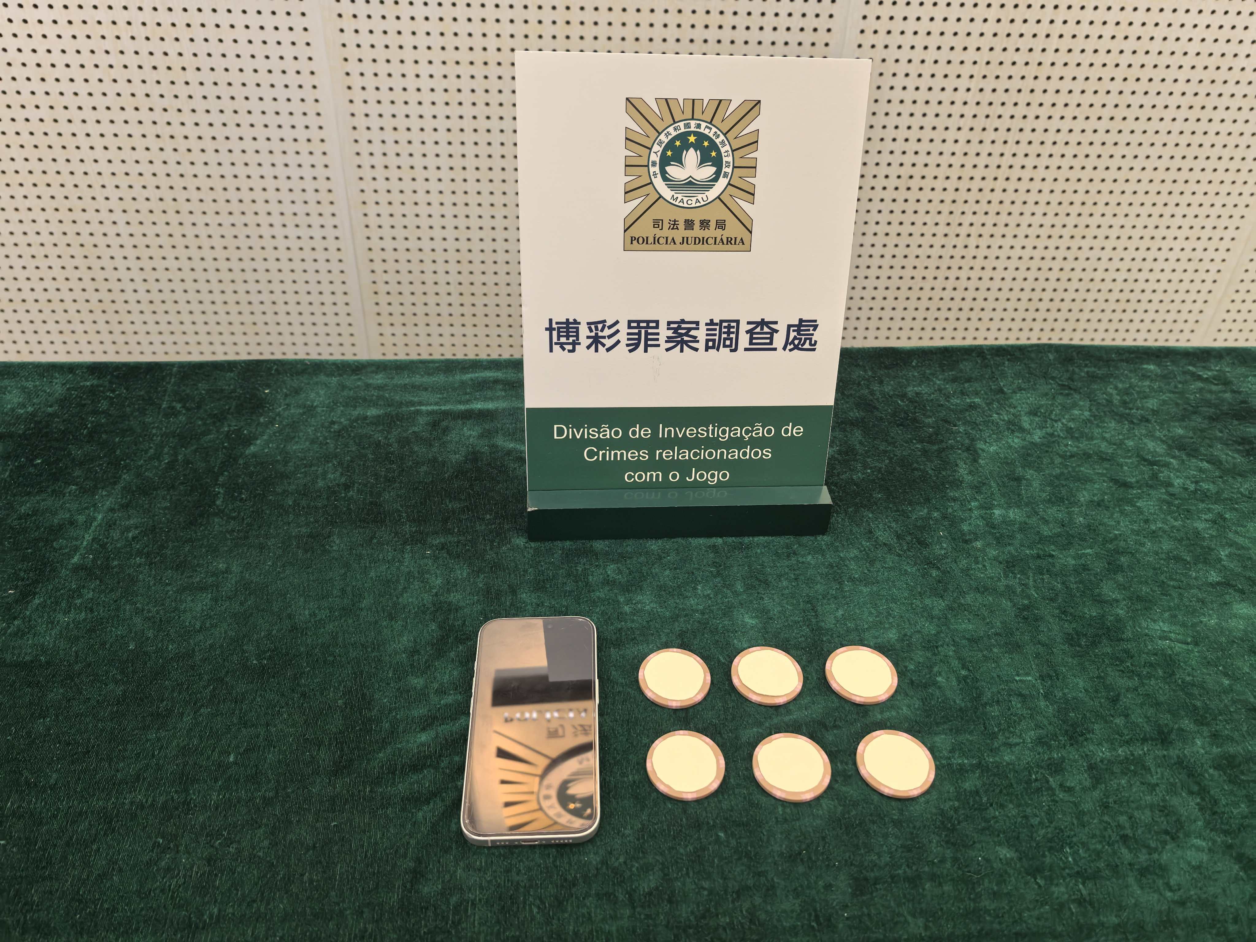 【即時新聞】一名26歲內地無業男子涉嫌在新口岸區娛樂場使用偽造籌碼詐騙一名內地女遊客,事主損失人民幣55,200元。司警接報到場調查,當場拘捕該名男子,並檢獲6個面值1萬港元的假籌碼。