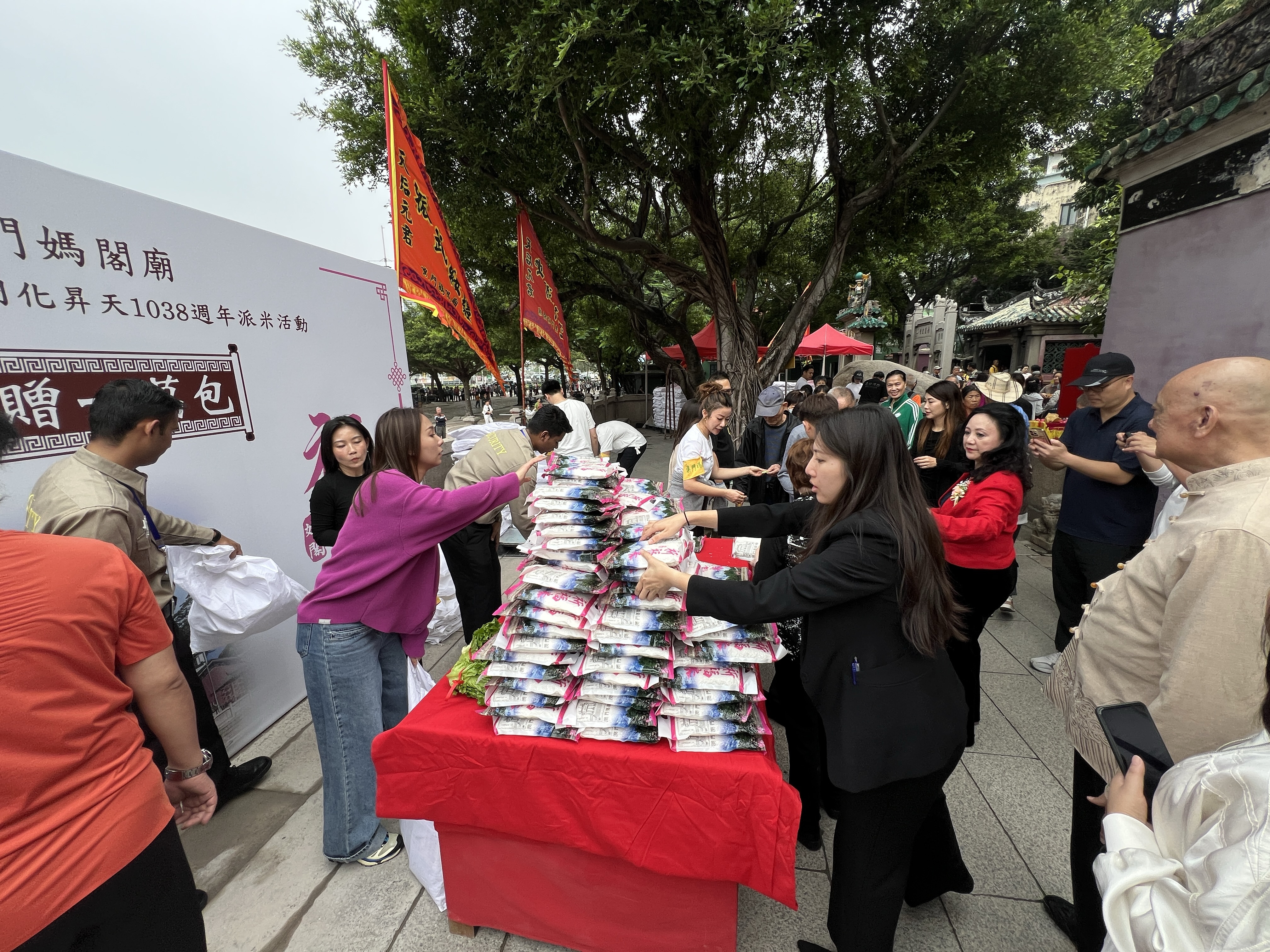 【即時新聞】今日是農曆九月初九重陽節,澳門媽閣廟在廟內舉行紀念媽祖羽化昇天一千零三十八周年祈福派米活動,廟方負責人與嘉賓及善信參與。負責人希望通過活動,弘揚及傳承媽祖精神,增進民族團結,促進國家繁榮昌盛、澳門特區「一國兩制」實踐行穩致遠、百業興旺,居民大眾闔家安康。
