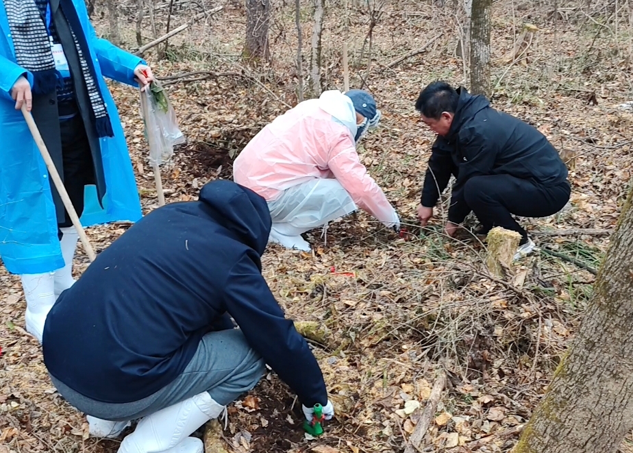 隨後,一行前往長白山鹼水河國家濕地公園林下參基地,在基地工作人員引導下,了解人參的種植歷史與藥用價值,並參與「溯溪+挖人參」體驗活動。 團員們換上溯溪雨靴,手持木棍,一邊在冰涼清澈的溪水中緩步前行,一邊了解長白山原始森林內的奇珍異寶。 在林下參採挖區域,團員們手持鹿骨及塑膠小鏟,在工作人員手把手指導下,小心翼翼地挖掘人參,感受傳統採參文化的精髓。