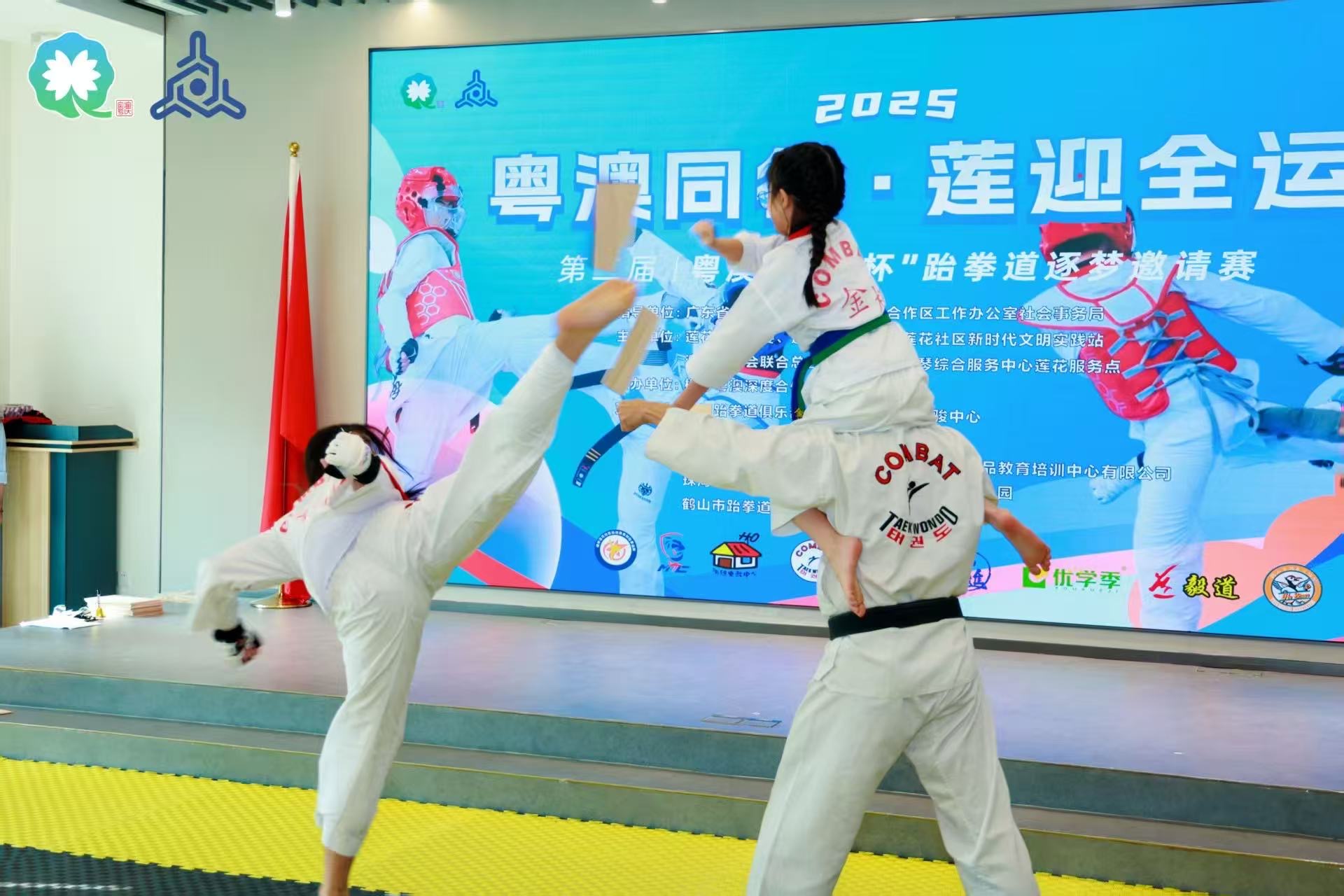 【即時新聞】由橫琴蓮花社區黨委、婦聯、新時代文明實踐站與澳門街坊總會廣東辦橫琴綜合服務中心蓮花服務點聯合主辦的“粵澳同行,蓮迎全運”2025年第二屆粵澳“蓮心杯”跆拳道逐夢邀請賽,今日於蓮花社區黨群服務中心禮堂順利舉行並圓滿收官。