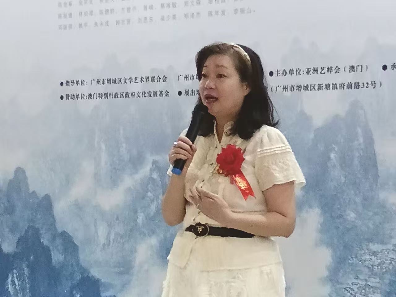 易穎致辭時表示,新塘作為嶺南文化重要承載地,此次展覽為中外藝術交流搭建了平台。得到亞洲藝粹會(澳門)會長梁少美聯繫邀請國際名家,廣州市國畫協會會長朱永成配合安排當地畫作,新塘政府支持,讓市民可近距離欣賞多元風格作品,感受嶺南畫派的開放包容,為當地文化發展注入新活力。