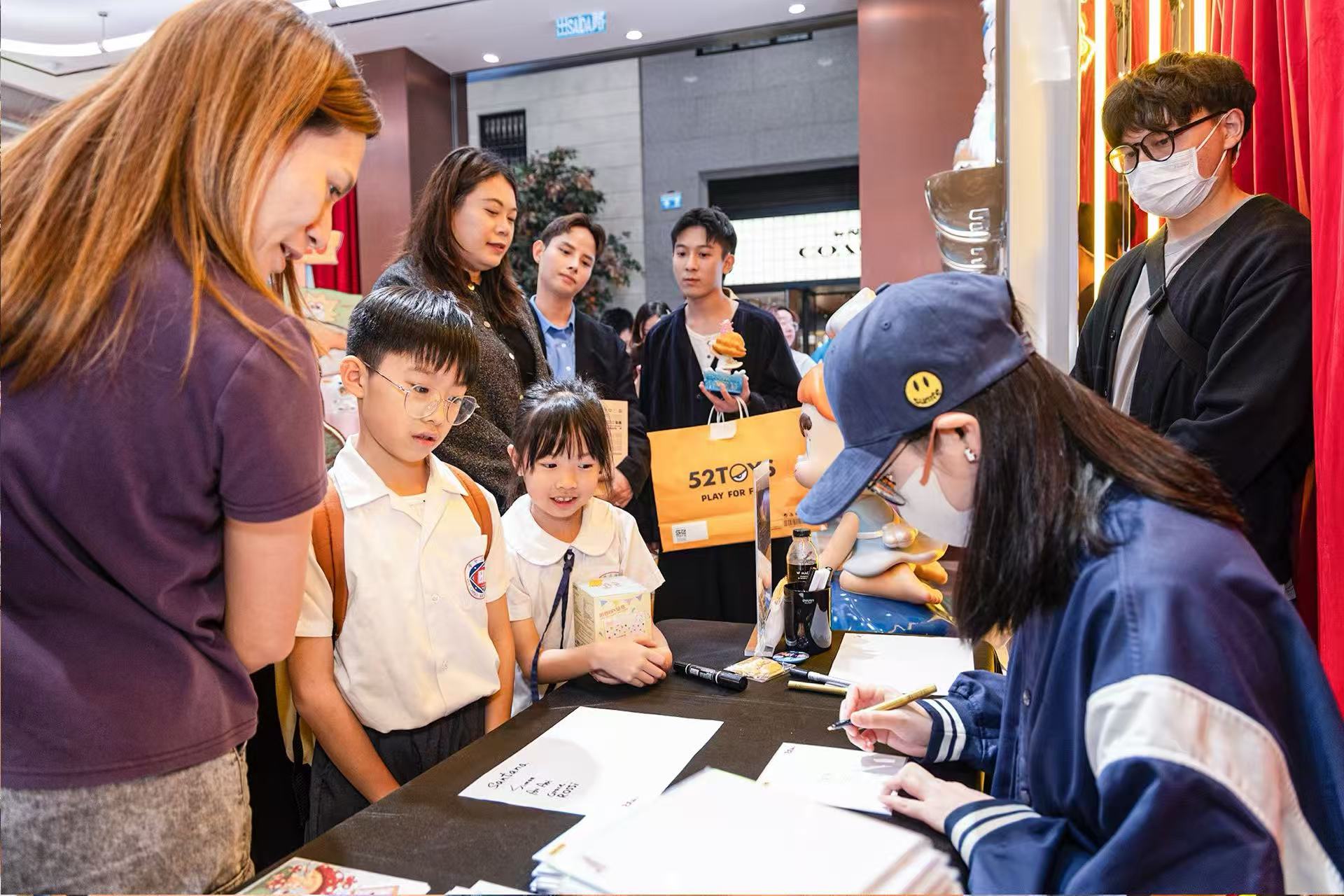 為慶祝澳門首店開幕,52TOYS特別推出澳門限定首發「Pouka Pouka波波葡撻毛絨搪膠」,作品靈感源自澳門經典美食及非物質文化遺產「葡撻」,以可愛俏皮的造型及細膩質感展現品牌創意,僅限新濠影滙店獨家發售。同日,「CiCiLu」設計師懶貓亦於澳門首店舉行簽名會,與眾多潮玩愛好者互動交流,現場氣氛熱烈。