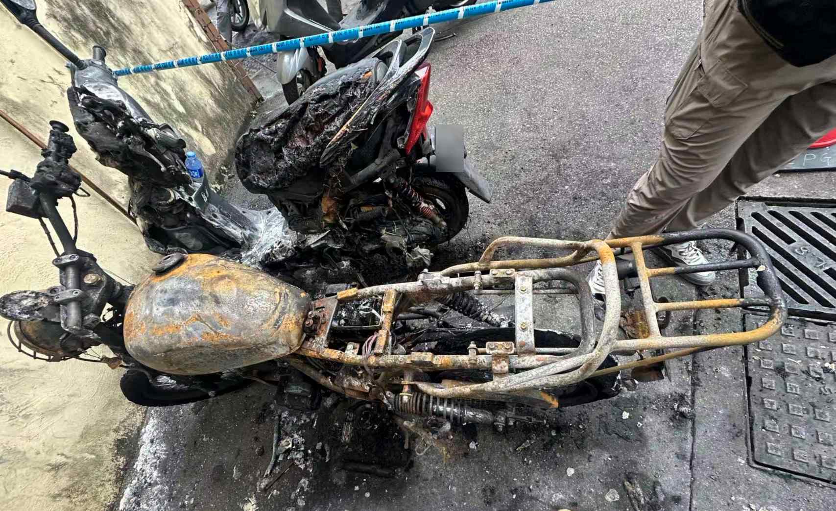 司警調查發現,案發前凌晨曾下大雨,現場環境濕潤,且監控未發現可疑人士進出,排除人為縱火可能。經專業檢測,被燒至白化的電單車曾於火警前兩日更換ECU電路板,且啟動開關未完全關閉,導致電路板持續供電引發電力超負荷自焚。