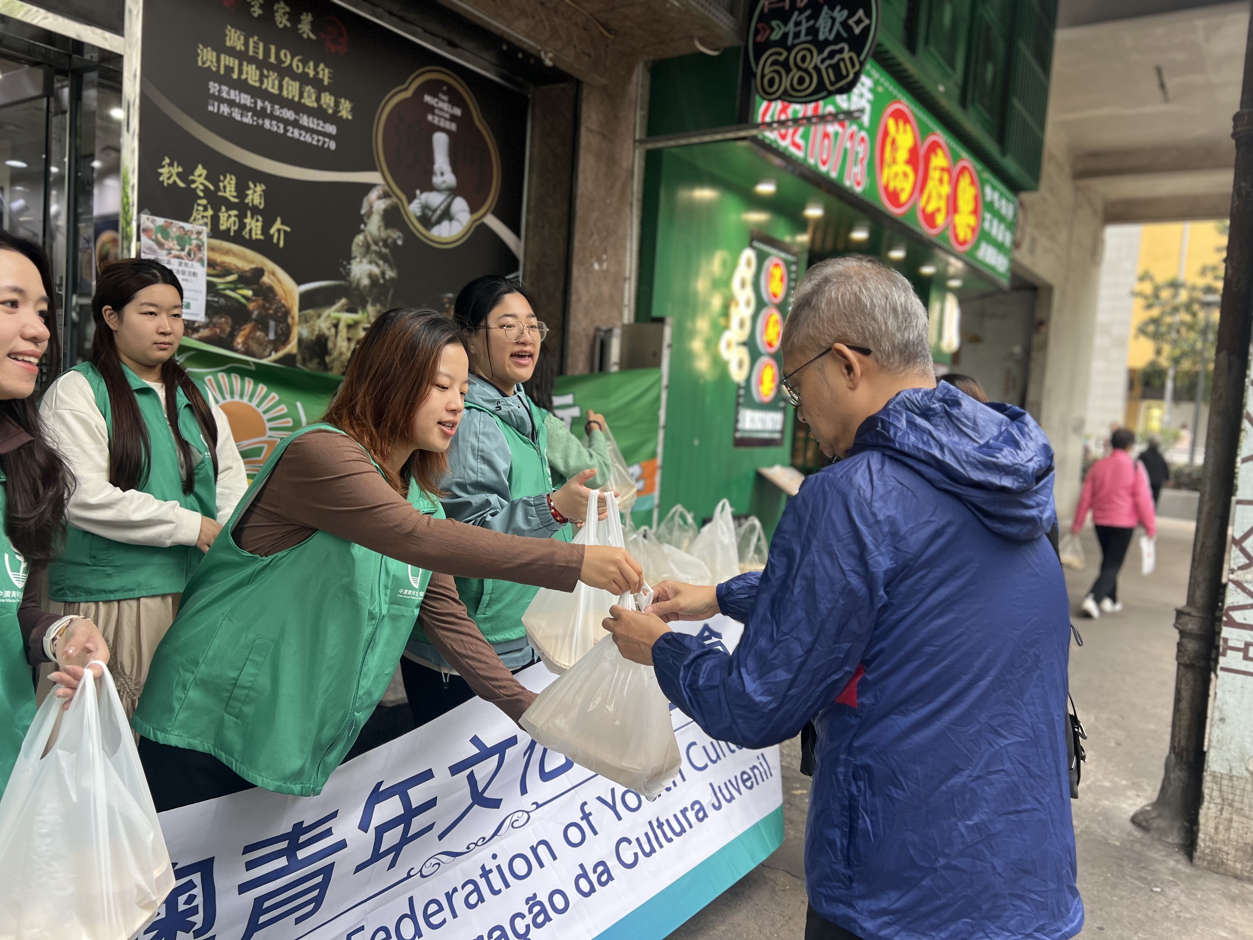 【即時新聞】中澳青年文化聯合會於十一月四日創新採用「雙區聯動」模式,同步分別在筷子基及石排灣舉行大型公益派飯活動。本次活動亦獲得路環石排灣居民互助會支持,雙方攜手動員本澳青年志願者,向環衛工人、獨居長者及困難家庭派發約六百八十個愛心飯盒。是次跨區協作不僅為社區送暖,更搭建起青年踐行公益的平台,展現多元社會力量共同關懷社區的成果。