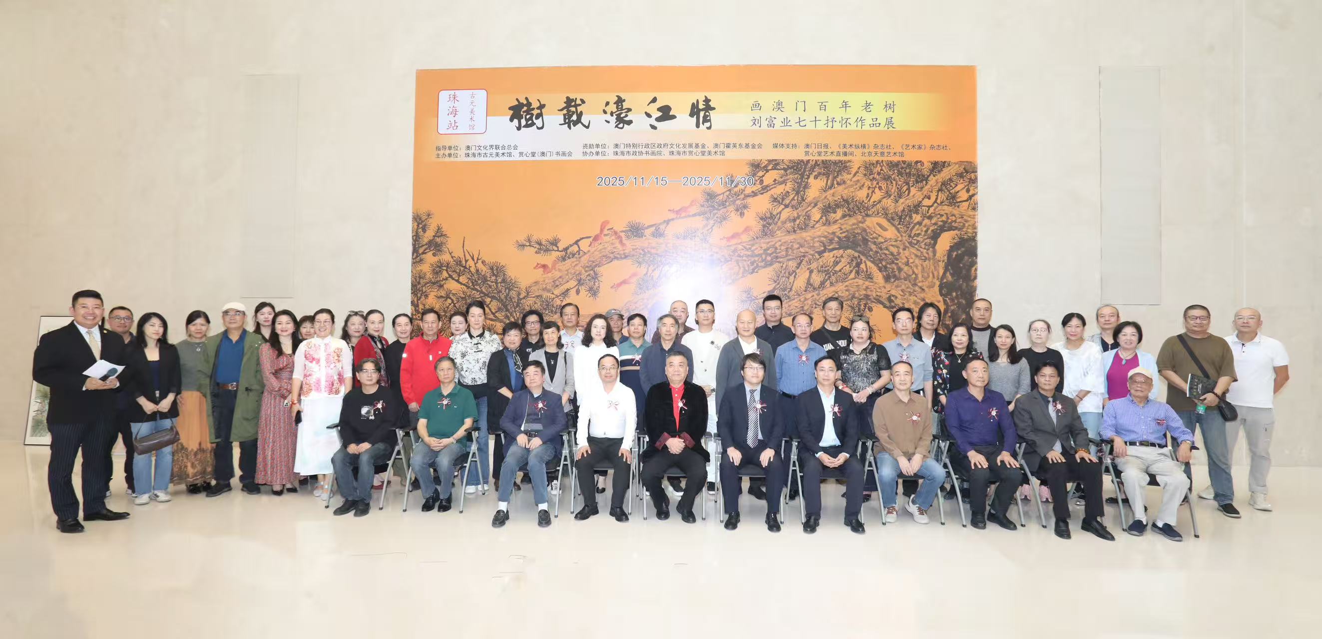 【即時新聞】由珠海市古元美術館、賞心堂(澳門)書畫會主辦的「樹載濠江情——畫澳門百年老樹,劉富業七十抒懷作品展」昨在珠海市古元美術館開幕。展覽集中呈現廣東省美術家協會副主席、賞心堂(澳門)書畫會會長劉富業創作的數十幅以澳門百年老樹為主題的巨幅畫作,以筆墨寄情,透過藝術語言講述澳門歷史記憶,生動展現澳門獨特的自然風貌與人文底蘊,彰顯「掌上明珠」的魅力。透過展覽深化珠澳兩地的文化連結,助力推動區域旅遊合作,攜手講好大灣區融合發展的精彩故事。