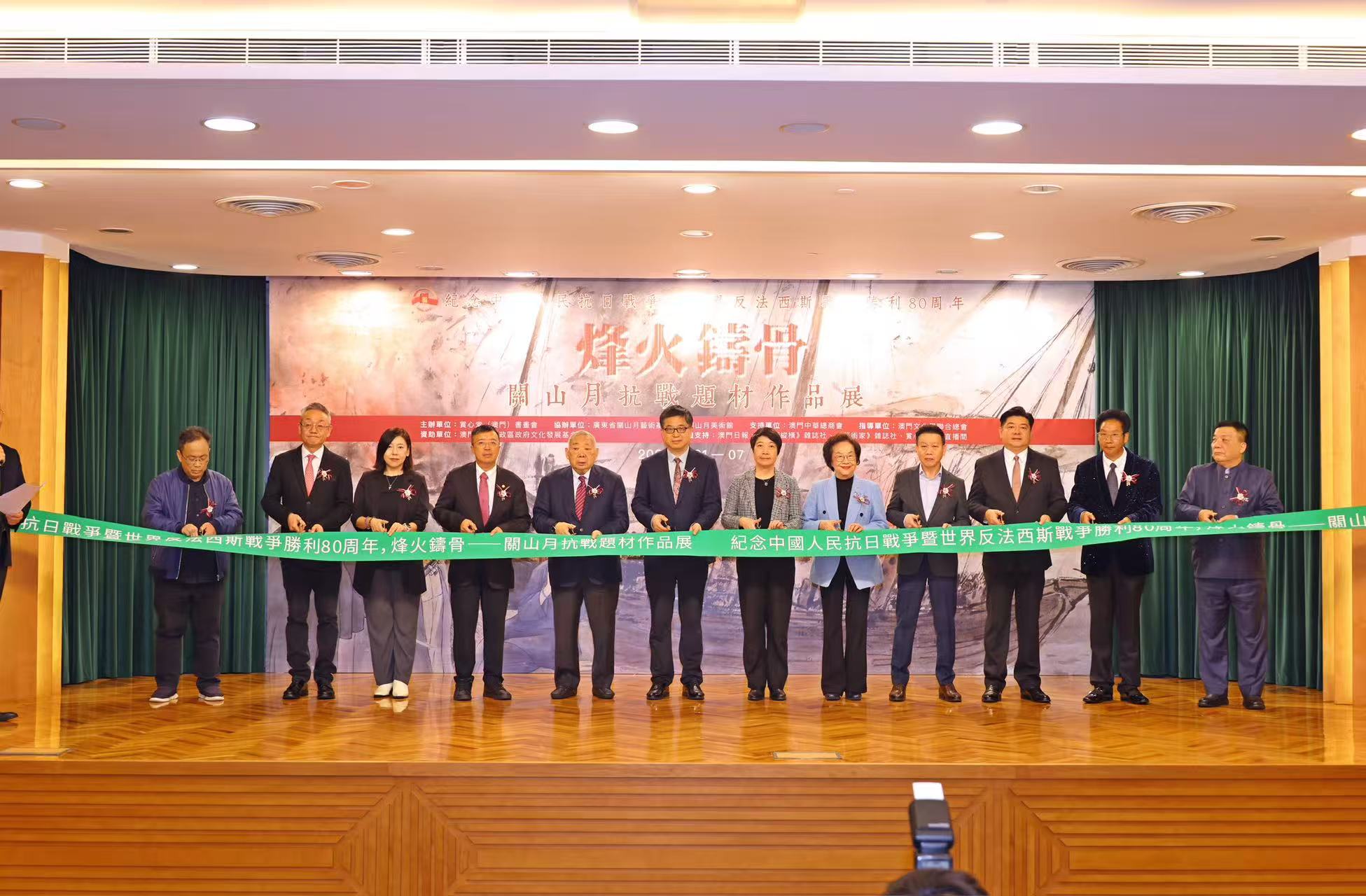 【即時新聞】由賞心堂(澳門)書畫會主辦,獲文化發展基金資助的「紀念中國人民抗日戰爭暨世界反法西斯戰爭勝利80周年,烽火鑄骨——關山月抗戰題材作品展」傍晚在中總四樓馬萬祺先生紀念堂揭幕。展出嶺南畫派代表人物關山月於抗戰時期創作的近50幅書畫作品,內容涵蓋戰地寫生、流離百姓、愛國志士等主題,深刻記錄烽火連天歲月中,中華民族不屈不撓、共赴國難的精神風骨與歷史記憶,彰顯老一輩藝術家「文以載道、藝以報國」的崇高情懷,藉此緬懷先烈、銘記歷史,弘揚偉大抗戰精神,在澳門社會進一步厚植愛國情懷。