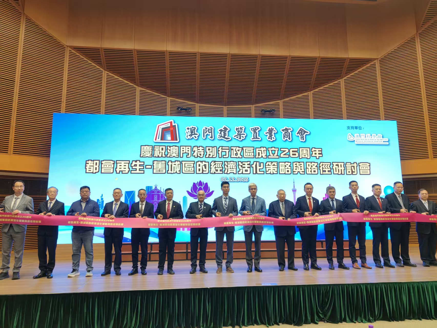 研討會下午2時30分在科學館會議廳舉行,運輸工務司司長代表、土地工務局局長黎永亮,中聯辦經濟部助理趙速,交通事務局代副局長莫垂道,房屋局代副局長鄭錫林,消防局代副局長李龍傑,澳門科學館館長邵漢彬,中華總商會會長崔世昌、理事長馬志毅,建築置業商會永遠榮譽會長劉永誠、副會長林金城,及公共建設局、文旅局等多部門代表、都市更新委員會、城市規劃委員會委員及建築置業界專業友會代表出席。