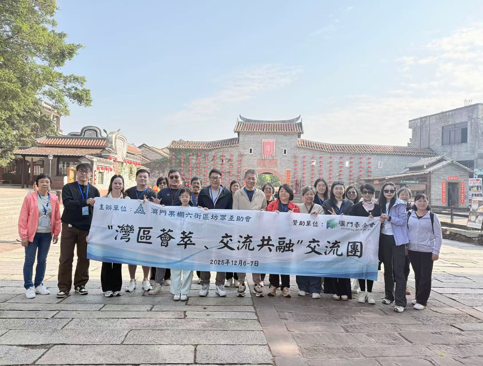 交流團由果欄六街區坊眾互助會理事長徐鳴莉任名譽團長、果欄六街區坊眾互助會副會長任黃盛毅團顧問、果欄六街區坊眾互助會副理事長梁俊傑任團長,一行二十餘人涵蓋本澳社區、僑界及青年代表。除參觀松湖煙雨、南社古村落及海戰博物館外,與僑聯的專題交流成為行程重點。