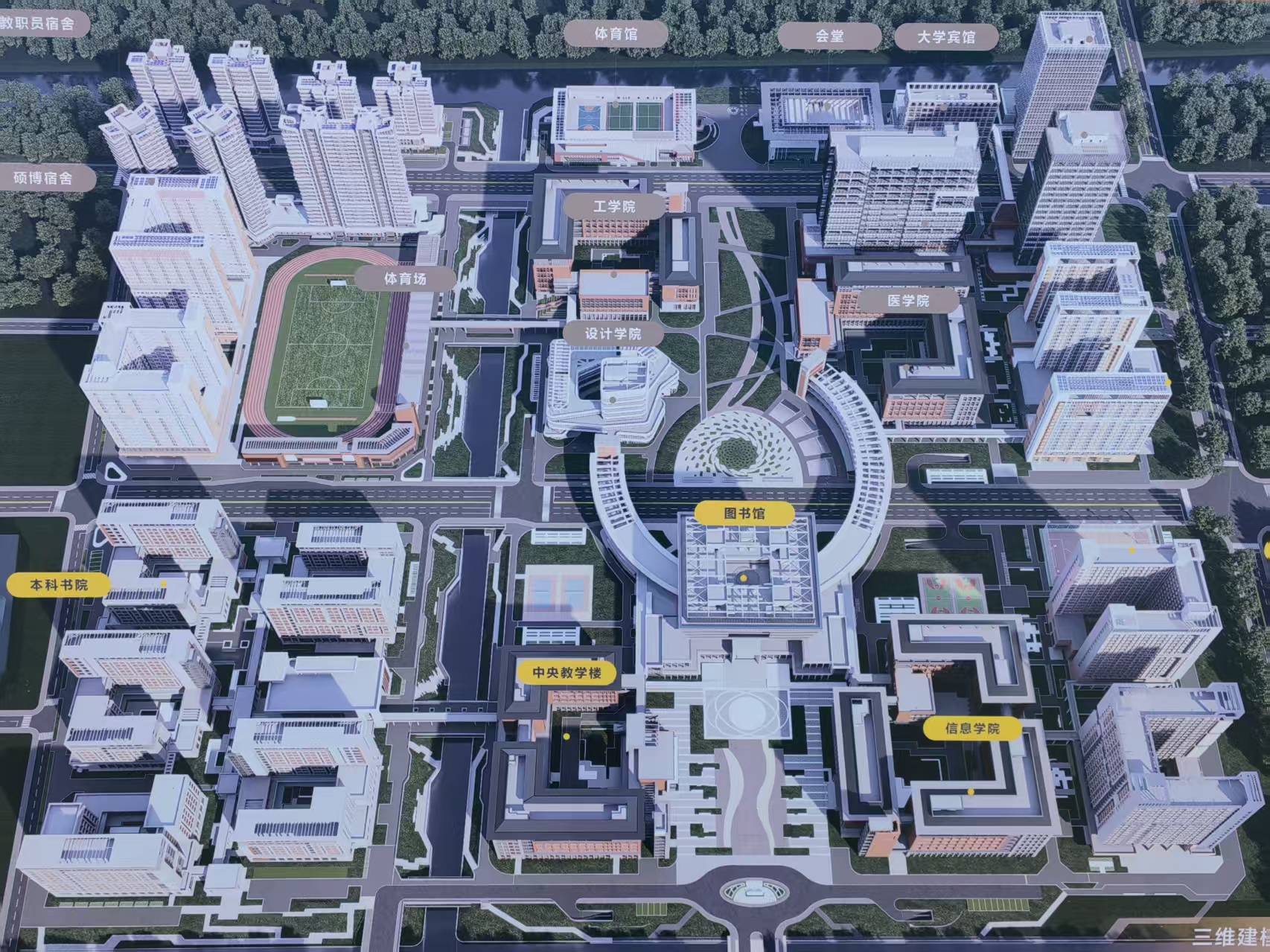 據悉,澳大深合區校區項目出讓總用地面積約37.56萬平方米,建築面積約83.1萬平方米,施工期為三年,計劃於2028年部分啟用,2029年全面建成。校區規劃建設中央教學樓、體育館、濱河國際交流中心、師生宿舍等完善配套。建築設計兼具文化特色與功能價值:明朗現代的多功能綜合樓為校園標誌性建築,暗紅色調的中央教學樓彰顯人文底蘊,設計學院則以流線型空間營造藝術氛圍。各主要建築通過校園學術連廊連接,形成景觀與功能融合的空間佈局,延續澳大環境育人的理念。