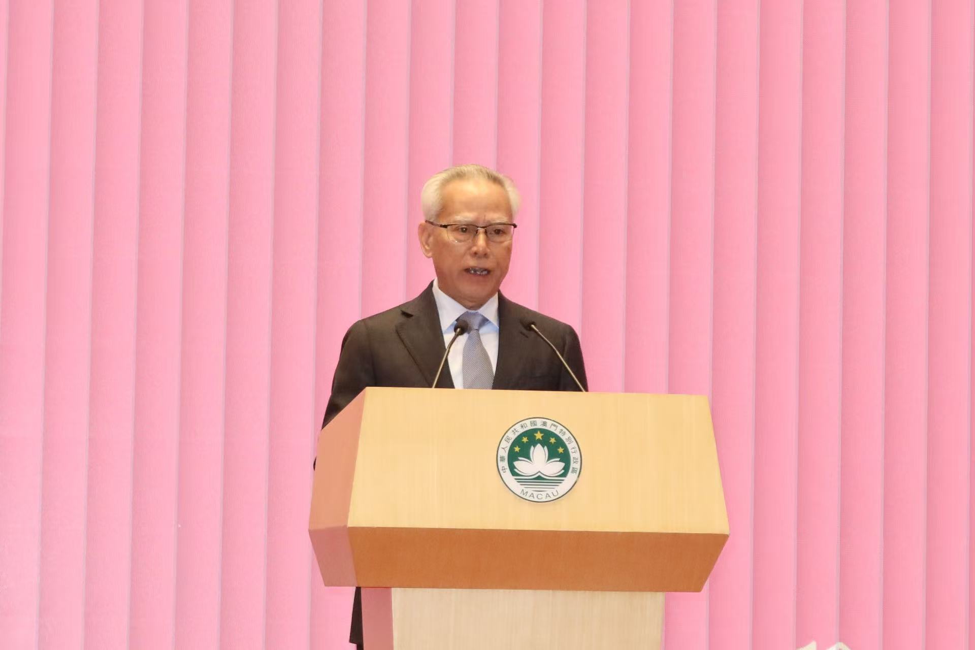 行政長官岑浩輝致辭時向全體澳門居民致以節日問候及美好祝福。他指出,日前赴京述職時,習近平主席對一年來特區政府和澳門各界攜手奮鬥所取得的新進步給予了充分肯定和勉勵指導。習主席對澳門殷切關懷、寄予厚望,深刻指出特區政府要主動對接國家“十五五”規劃,堅持和完善行政主導,扎實推動經濟適度多元發展,不斷提升治理效能,更好融入和服務國家發展大局。為澳門更加務實進取地推動當前及今後一段時期澳門的發展,提供了根本遵循,堅定了信心底氣。特區政府必將團結帶領社會各界認真學習領會、堅定貫徹落實習主席的重要指示精神和中央的重大決策部署,持正革新、奮發同行,不斷開創“一國兩制”事業高質量發展新局面。
