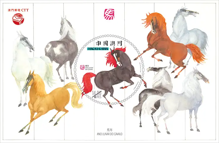 除上述郵品外,亦推出以下三款以馬年生肖為題的郵品。郵摺載有本次發行的一套四枚郵票、一枚小型張、連郵票首日封及連小型張首日封各一個,每冊售價為澳門元一百二十元;精美禮盒盛載一套以駿馬為主題的「馬年」陶瓷蓋碗及郵摺一冊,郵摺內載本次發行的一套四枚郵票,整套售價為澳門元三百六十八元。售賣地點僅限郵政總局集郵商店,發行數量有限;紀念封貼有中澳兩地郵政發行的郵票,分別為一套兩枚合共人民幣二元四角的中國郵票,以及上述發行之一套四枚合共澳門元十七元的澳門郵票,並分別以中國郵政和澳門郵電的郵戳蓋銷。紀念封總發行量為一萬二千個,澳門共銷售二千個,每個售價為澳門元三十元。