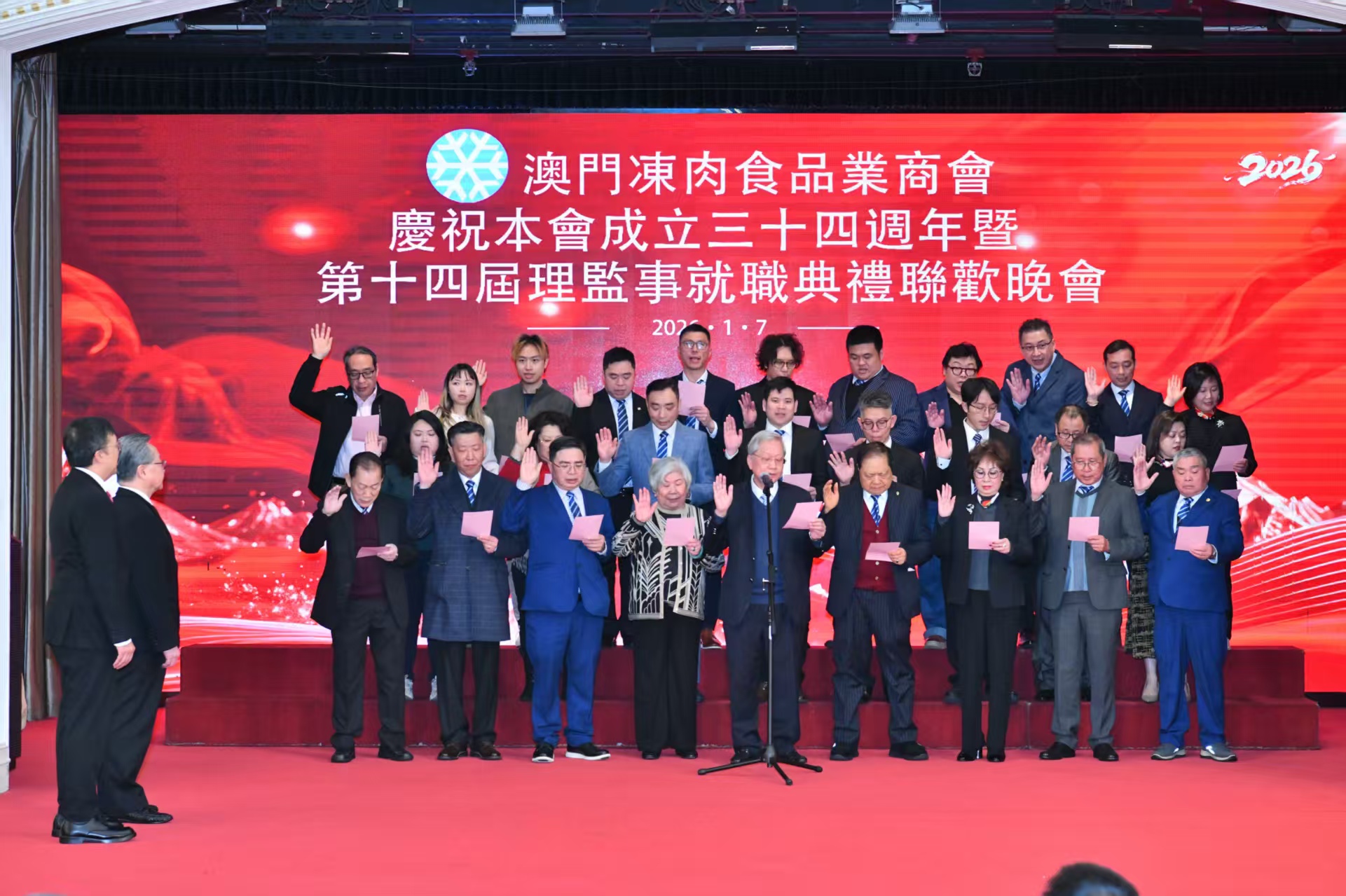 【即時新聞】澳門凍肉食品業商會晚上假萬豪軒舉行該會成立三十四週年暨第十四屆理監事就職典禮聯歡晚會,該會表示,未來將繼續與政府有關部門在凍肉冷鏈供應方面做好把關工作,為民生供應鏈穩定出力,確保消費者吃得安心、零售及餐飲客戶用得放心。
