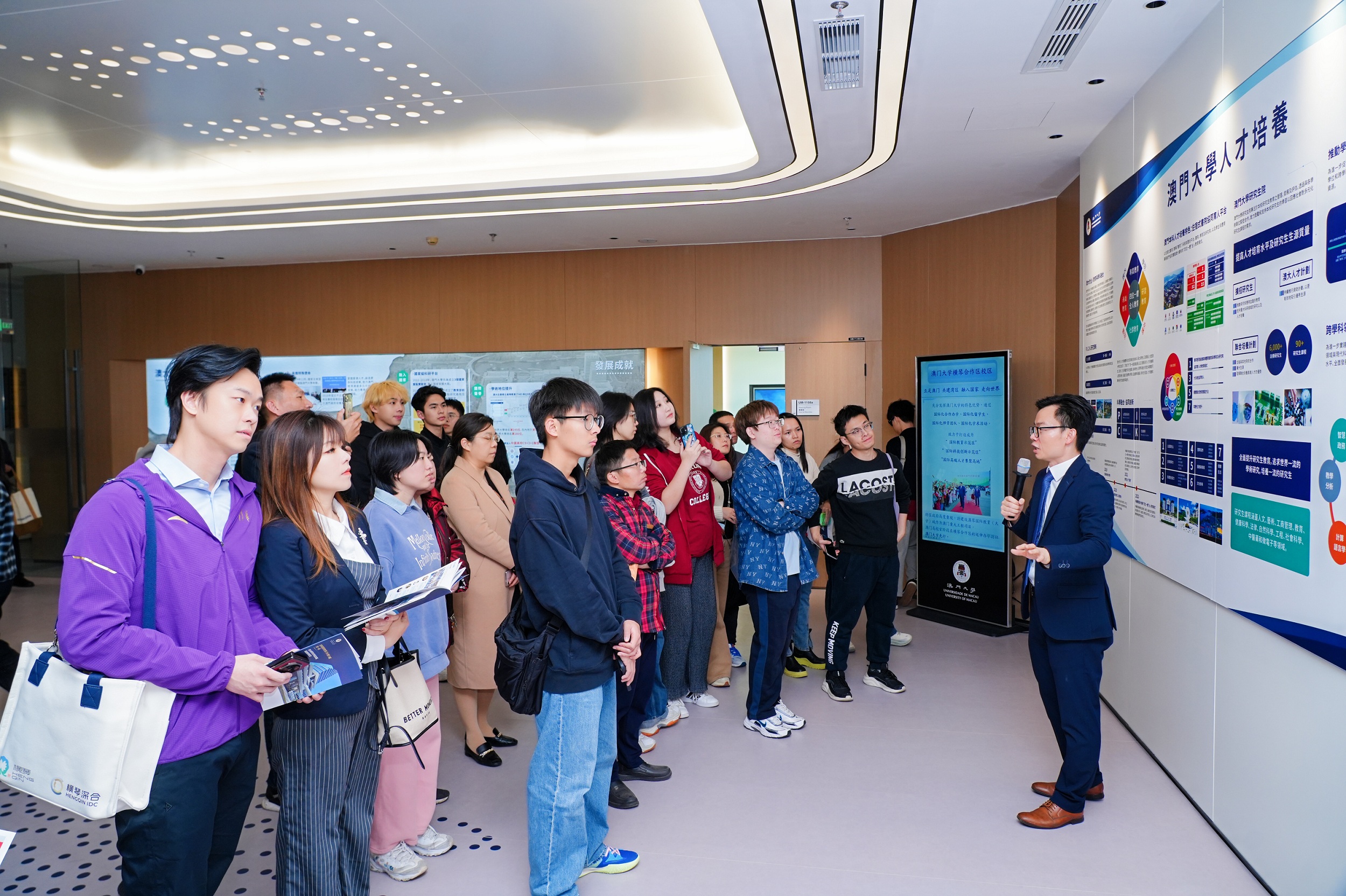 此外,合作區校區過渡期辦學點及珠研院也同步開展入學查詢、科研分享、校友交流等活動,讓更多人感受澳大的辦學特色與發展活力。其中,首度開放公眾參觀的合作區校區過渡期辦學點,不僅吸引澳門學生和家長踴躍到場,更有許多來賓專程自外地前來,其中不乏來自粵港澳大灣區,如香港、中山、珠海等鄰近城市的家長。有來自江門的家長得悉是次澳大校慶開放日活動,雖未能及時辦理港澳通行證簽證,但特意組團到橫琴粵澳深度合作區校區過渡期辦學點查詢入學情況,充分體驗了過渡期辦學點作為展示澳大辦學風采的窗口之一的重要性。此次過渡期辦學點的開放除讓訪客了解澳大升學資訊,更促進其與社會的交流互動,為澳大未來延伸辦學發展奠定良好基礎。