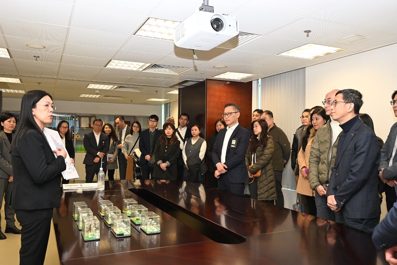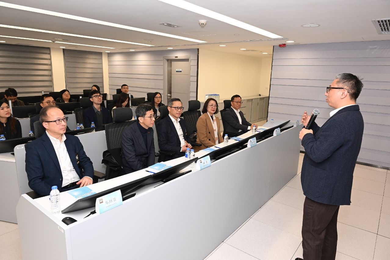 其後,代表團轉往司警局總部大樓,參觀反詐騙協調中心、網絡安全事故預警及應急中心,聽取司警局在預防電訊網絡詐騙、網絡安全風險預警及應急處置等方面的工作介紹,並了解相關技術配置與整體佈局。