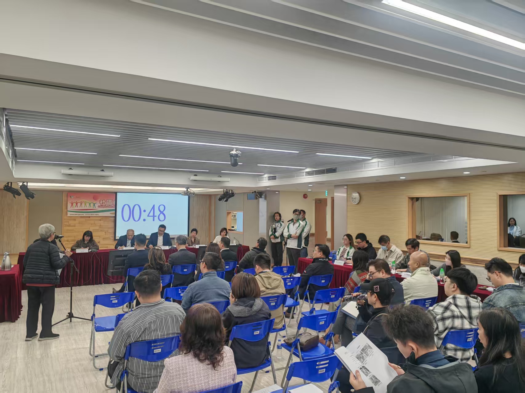 座談會晚上八時舉行,市政管理委員會主席周偉迎主席、副主席麥儉明、委員吳秀虹、杜淑儀、譚惠芳,文康及公民教育廳廳長龎筱韻、食品安全廳廳長張桂達、環境衛生及執照廳廳長馮惠星、市政建設廳廳長何萬謙、衛生監督廳廳長梁焯文等出席。