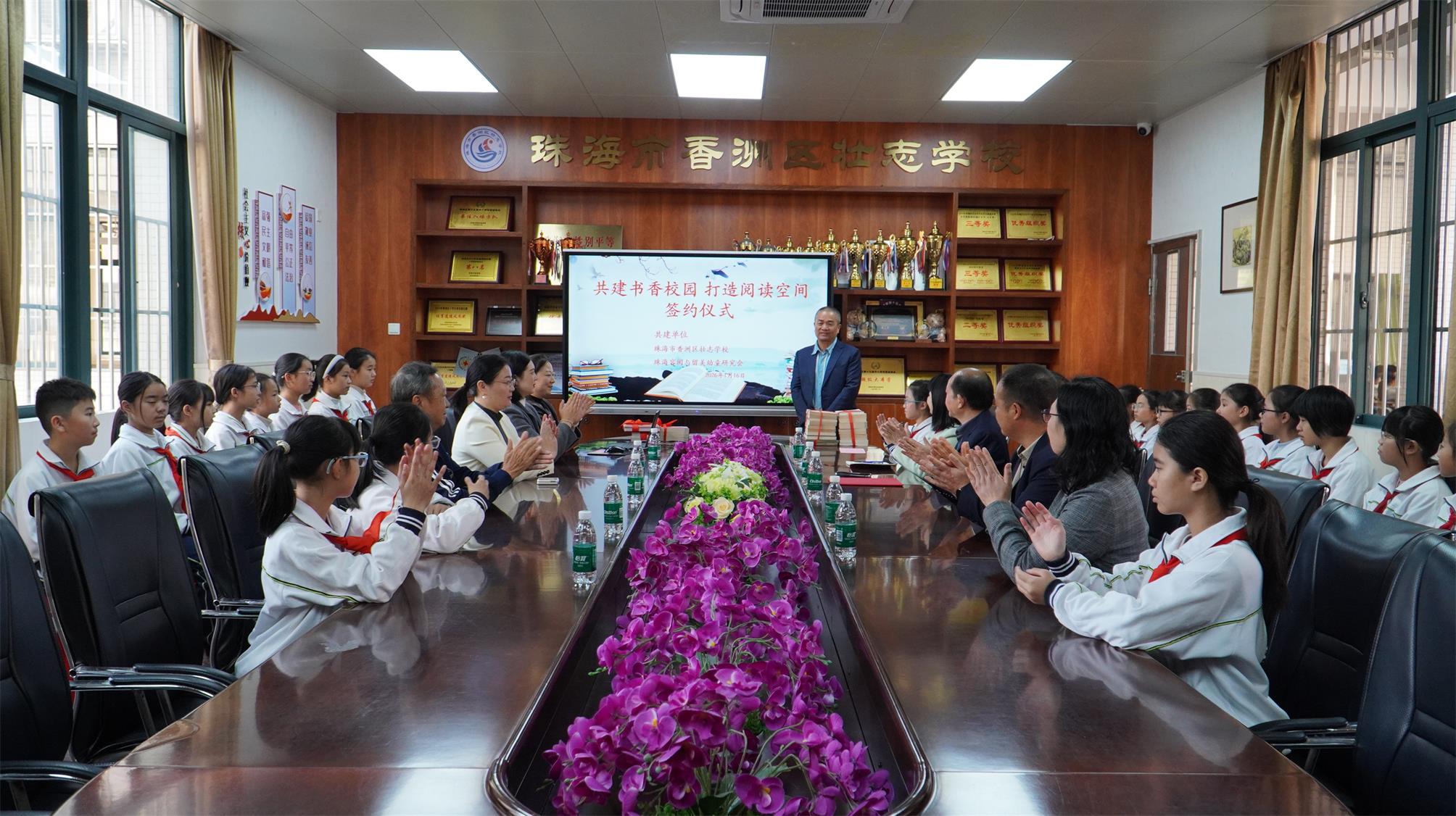 【即時新聞】今日上午,珠海市香洲區壯志學校與珠海容閎與留美幼童研究會在校園內舉行了以“共建書香校園、打造閱讀空間”為主題的共建協定簽署儀式。雙方將攜手合作,致力於打造書香校園,提升學校文化育人氛圍,促進學生綜合素質全面發展。