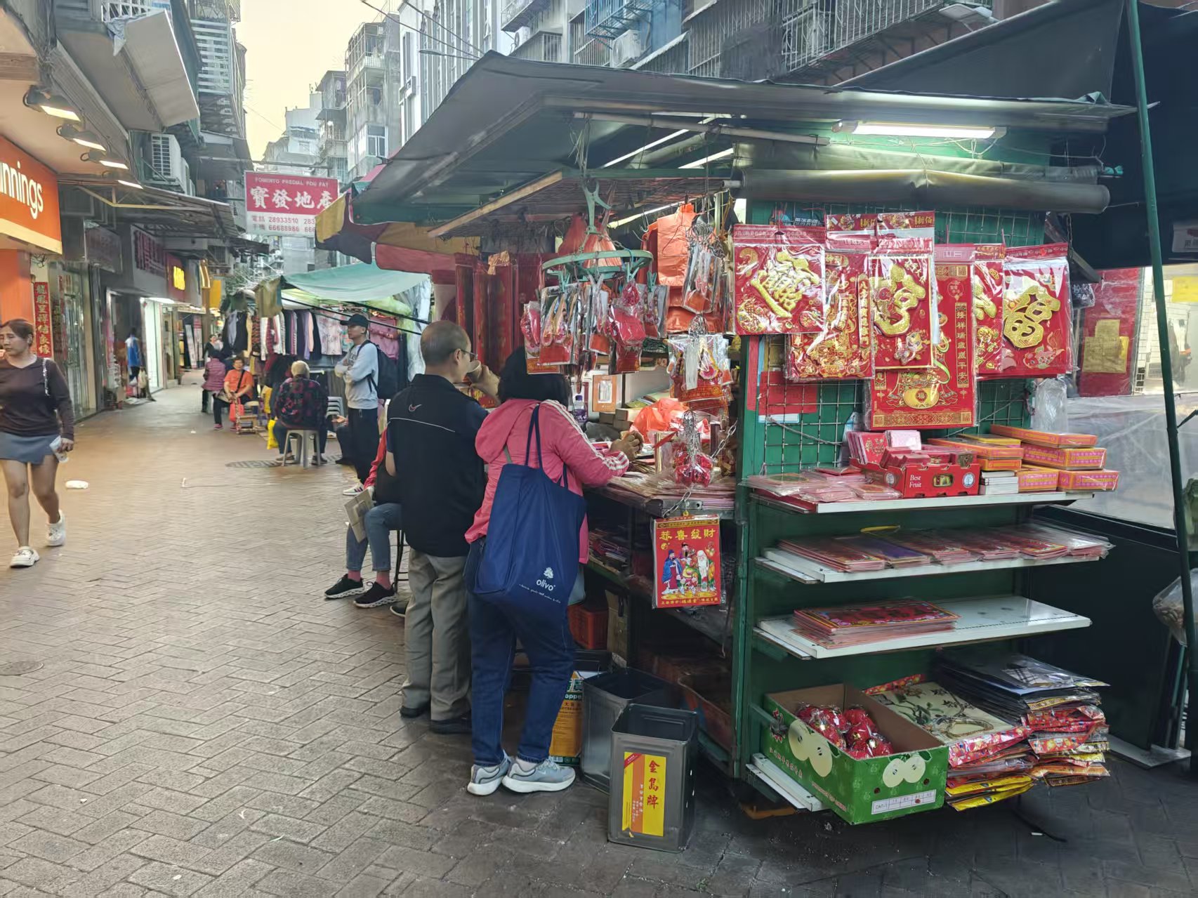 記者亦發現,街市外圍小販區匯集了各種生活用品、衣服、裝飾品、鮮花、水果、神香等攤位,不少街舖亦涵蓋美食老店、蔬菜、超市等,把街道點染得五彩繽紛,過往的街坊熙來攘往,頗為熱鬧。張麗珍提到,過往街市是街坊居民主要「買餸」的地方,當時的街市人流如鯽,幾乎沒有空置檔位。