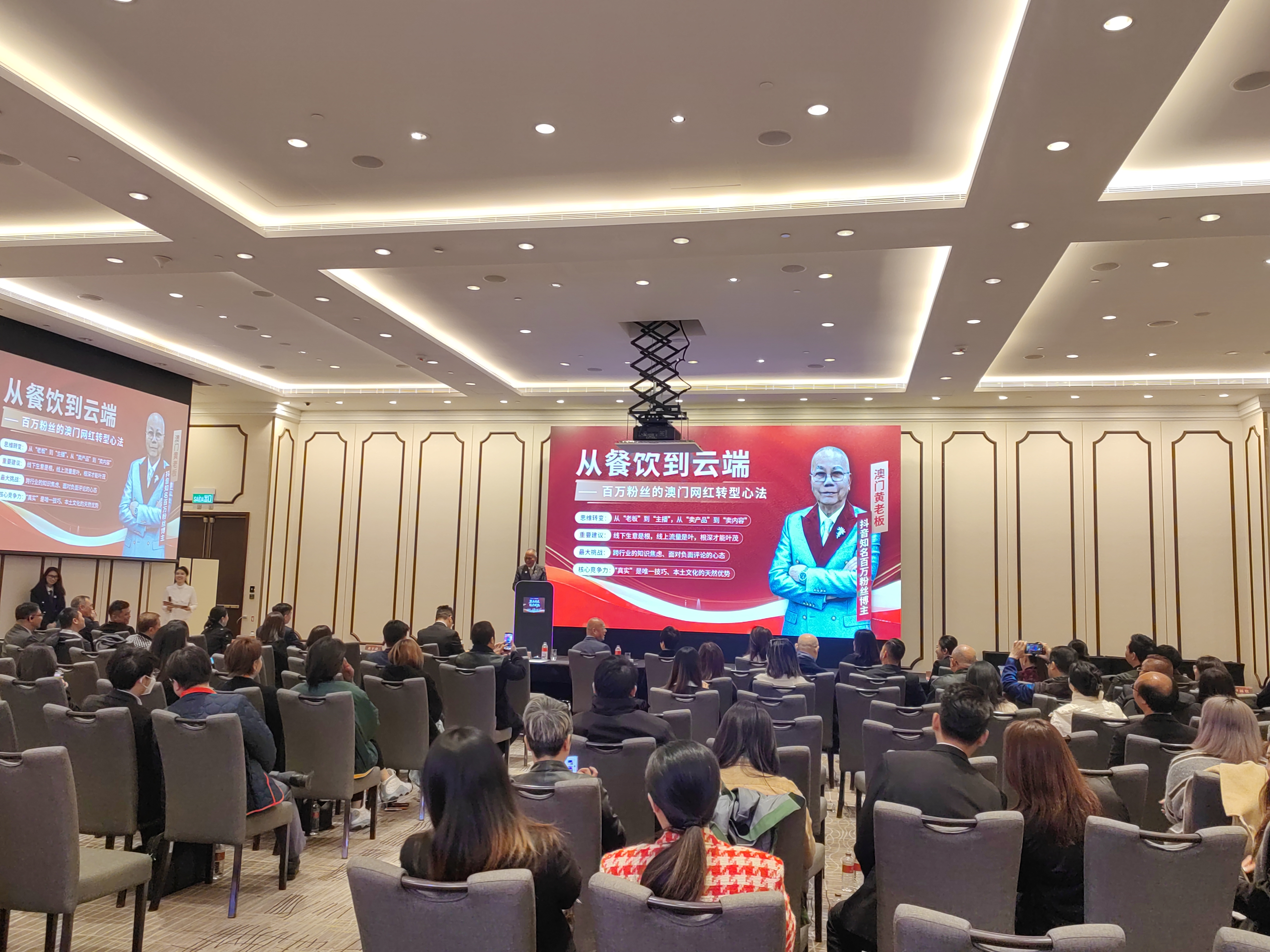 分享中,「澳門黃老闆」黃宇澄總結轉型成功的三大關鍵:第一,絕路是最好的老師,它會把人逼到墙角,激發出潛藏的潛能,那些看似不值錢的真誠與經歷,往往是最寶貴的財富;第二,「真實」是唯一技巧;直播间的核心是「人氣」,機器能生產完美的產品,但唯有人才會帶來溫度,年齡、口音等看似的「缺點」,很可能成為觀眾信任的理由;第三,做直播要「紮根」,不能為了追求流量而忘記初心,要將數十年累積的人生經驗與真實自我展現於線上,才能讓觀眾銘記,走得更遠更穩。
