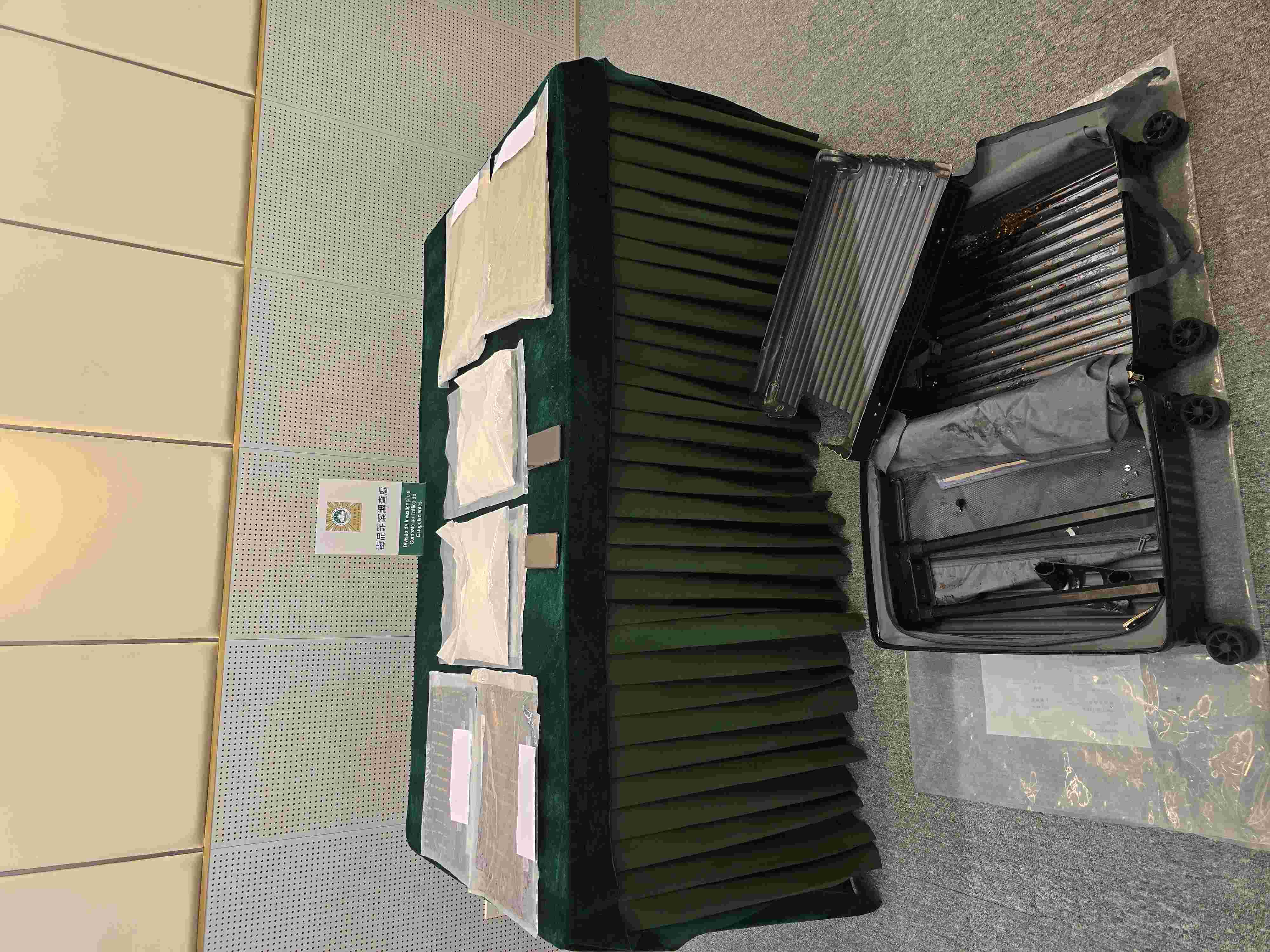 清空行李箱後,警方發現磅重有可疑,仔細檢查後在行李箱兩邊夾層內,分別搜出兩包共重4,559克的懷疑海洛英。包裹毒品的包裝袋外被塗滿辣椒粉及咖啡粉,明顯有意為掩蓋毒品氣味,干擾緝毒犬的偵查。