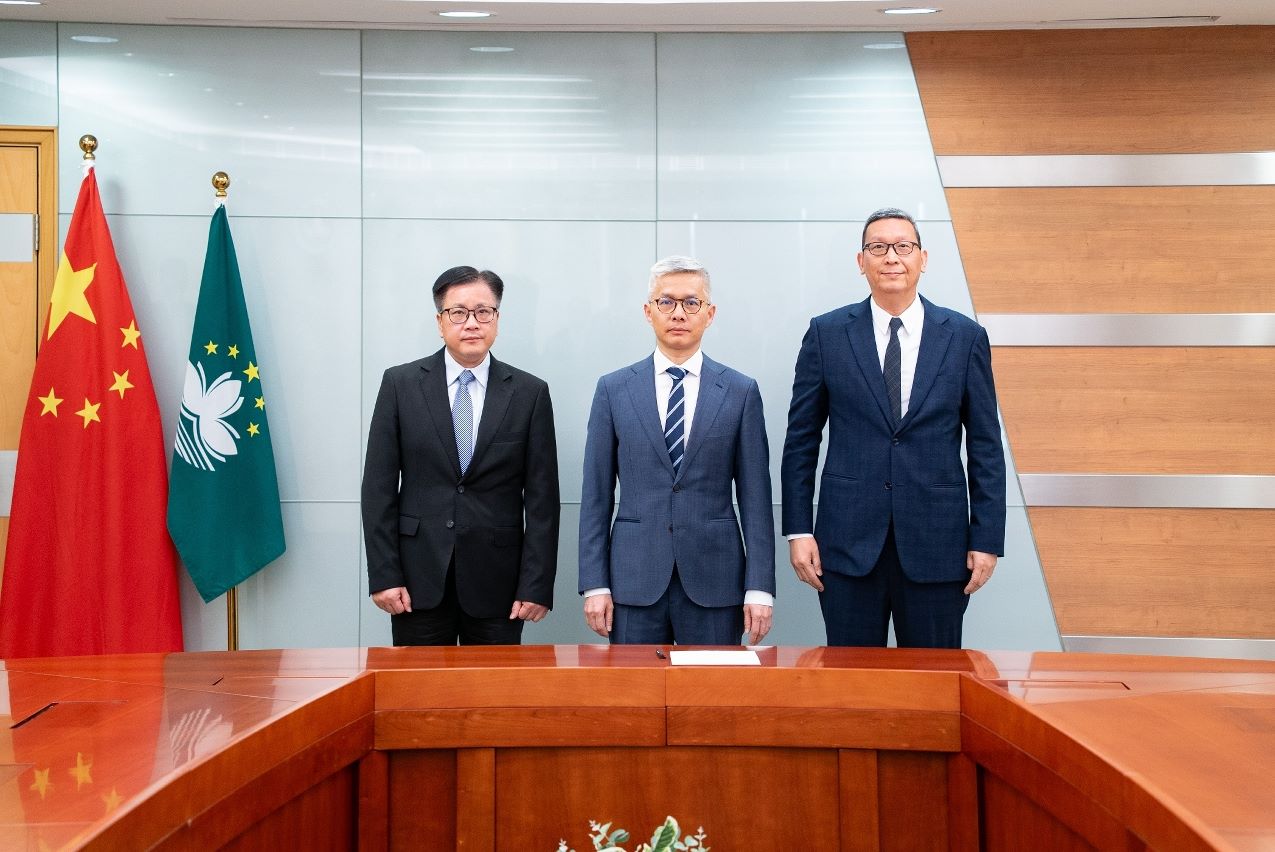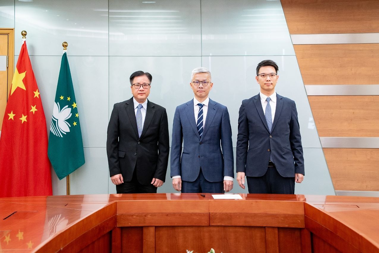 【即時新聞】澳門金融管理局行政管理委員會主席黃善文、統計暨普查局局長龐啓富今(2)日就職。就職儀式由經濟財政司司長戴建業主持,並由經濟財政司司長辦公室主任羅志輝見證。