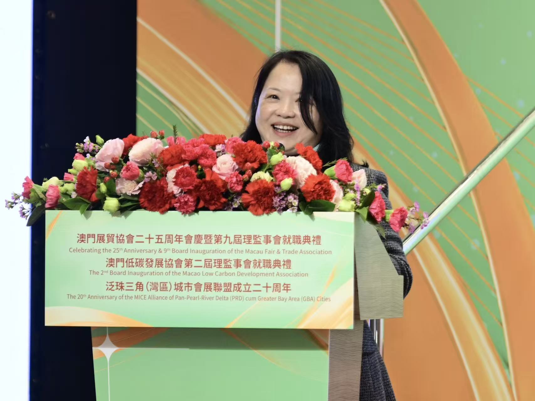 澳門展貿協會理事長陳思雅在致辭時稱,過去二十五年,協會在人才培育與綠色會展方面成果顯著。截至2025年,澳門本地註冊會展經理(CEM)畢業學員共348人,佔全國CEM畢業總人數的20%。在綠色會展方面,協會將持續深化與泛珠三角(灣區)城市會展聯盟及國際組織的合作,積極推動綠色會展標準,致力吸引更多國際會展活動落地澳門,助力行業向專業化、綠色化及國際化邁進。