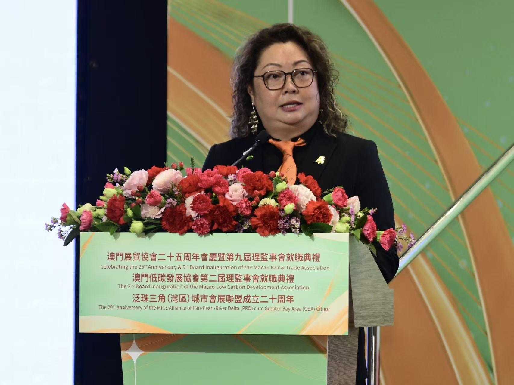 澳門低碳發展協會理事長岑惠妮在致辭中指出,該會與澳門展貿協會共同建立的「碳中和會展及活動標籤」等認證體系已獲業界積極響應,並於去年聯同廣東省低碳發展促進會發佈《粵港澳大灣區會展活動碳中和實施指南》,為大灣區構建具公信力的會展碳中和標準。展望未來,協會將進一步加強跨界協作,持續完善綠色會展標準體系。