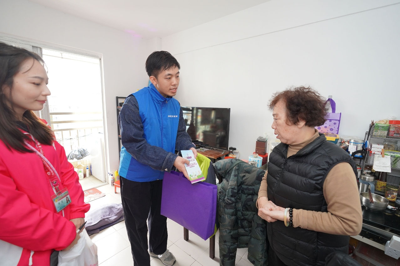 【即時新聞】今日海事及水務局聯同婦聯樂頤長者日間中心上門探訪石排灣樂群樓的獨居、高齡及長期病患長者,提醒長者注意保暖,並送贈生活用品和再生水小冊子,為長者講解再生水的供應日期、用途、水質標準、水質檢測、管道標識等,並耐心解答問題。
