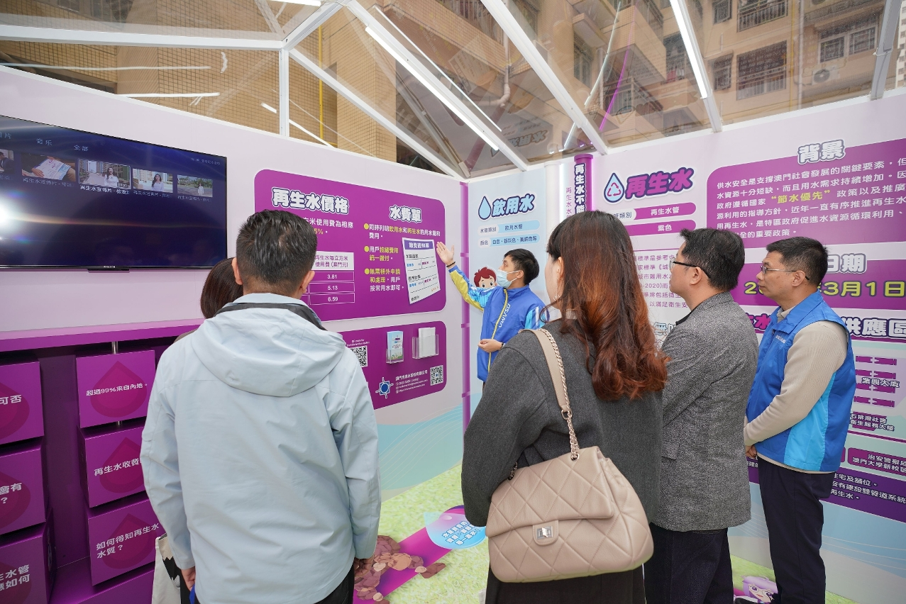 委員們首先參觀了石排灣樂群樓休憩區的“再生水資訊站”,了解宣傳資訊內容以及專員駐站講解服務,並參觀樂群樓的雙管道供水系統、水錶房及屋內供水設施。隨後前往路環再生水站一期,了解再生水站一期的規劃、日常運作、供水能力及應急預案等。