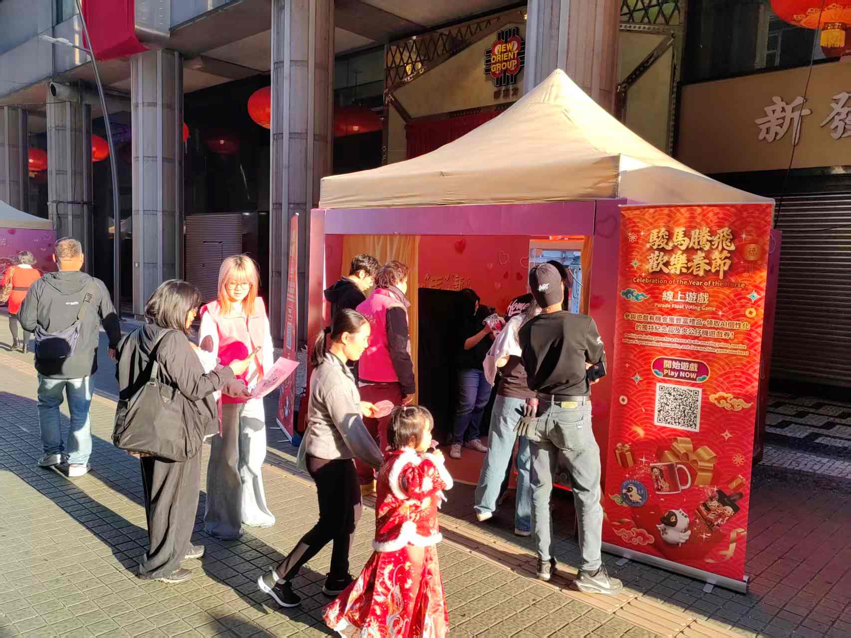 活動由2月13日至3月1日每日下午4時至晚上10時舉行,恰逢農曆新年與情人節交疊,新口岸街區被精心打造成集祝福與心動於一體的節慶舞台;整個街區精心打造三大主題區域,為市民旅客帶來沉浸式歡樂體驗:在福氣滿滿的財神大道上,巨型駿馬造型拱門氣勢十足,巨型紅色福袋「把福袋走」裝置寓意吉祥,搭配「發」字造型與財神塑像的「招財寶座」,成為眾多市民旅客打卡祈福、討個馬年好彩頭的熱門地點;寓意財源滾滾的馬上發財街,處處融入馬年吉祥元素,更設有流行的AI幸運籤遊戲,為參與者免費提供新年運勢預測,增添節日趣味;而浪漫洋溢的馬上戀愛街,粉色氛圍與心形裝飾點綴街巷,讓年味與浪漫感雙重拉滿,成為情侶約會打卡的熱選。