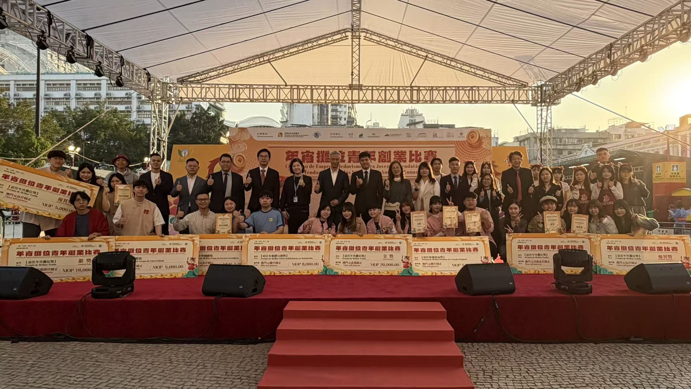 【即時新聞】由經科局與青年創業智庫協會合辦的「年宵攤位青年創業比賽」今日下午於塔石廣場進行評選及頒獎禮。是次比賽共有17個攤檔報名參加,包括13檔賀年禮品及4檔小食。為支持青年實踐創業理念,主辦單位除了提供經費補貼外,亦於賽前舉辦年宵攤位策劃和人工智能線上營銷工作坊,助力參賽者完善經營規劃及執行策略,期望透過比賽,讓青年累積更多營商經驗,激發創新與創意思維。