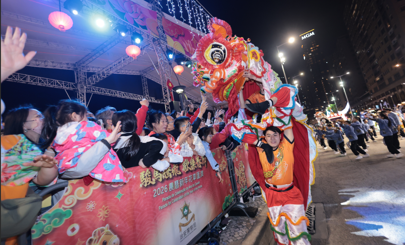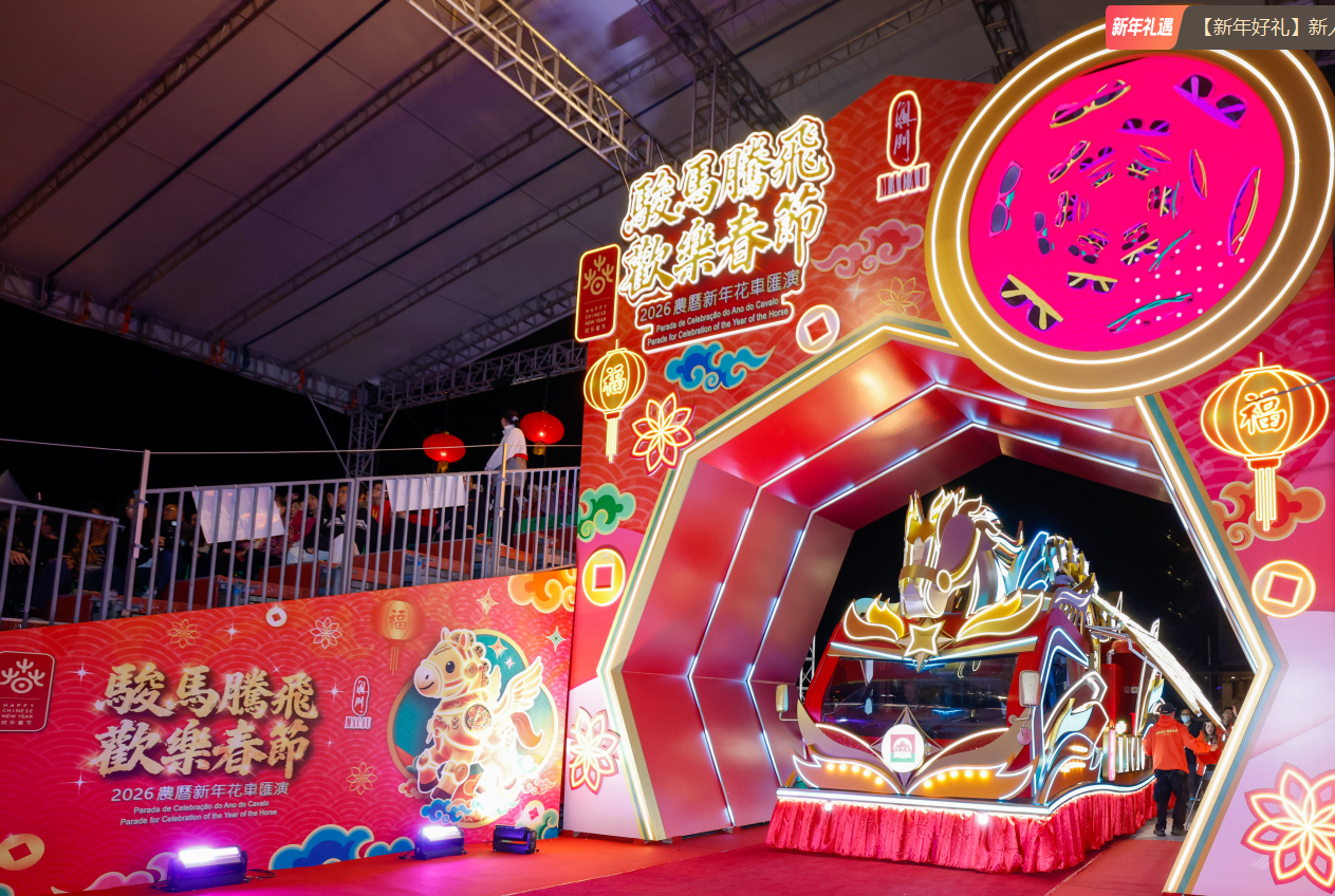 【即時新聞】由旅遊局主辦、亞洲旅遊交流中心、市政署、經濟及科技發展局(下稱“經科局”)、招商投資促進局(下稱“招商局”)、文化局、體育局和橫琴粵澳深度合作區經濟發展局(下稱“合作區經發局”)協辦的“駿馬騰飛 歡樂春節 2026農曆新年花車匯演”於今(2月19日)晚在西灣湖廣場隆重開幕。配合首辦的“金駿雲翔 歡樂春節”無人機煙花匯演,以及“歡樂春節─2026年龍騰舞躍賀新春”社區巡演,三項活動已獲國家文化和旅遊部納入“歡樂春節”活動框架,共同呈現澳門節慶與文旅融合的特色,吸引眾多居民與旅客到場觀賞,現場氣氛熱烈。